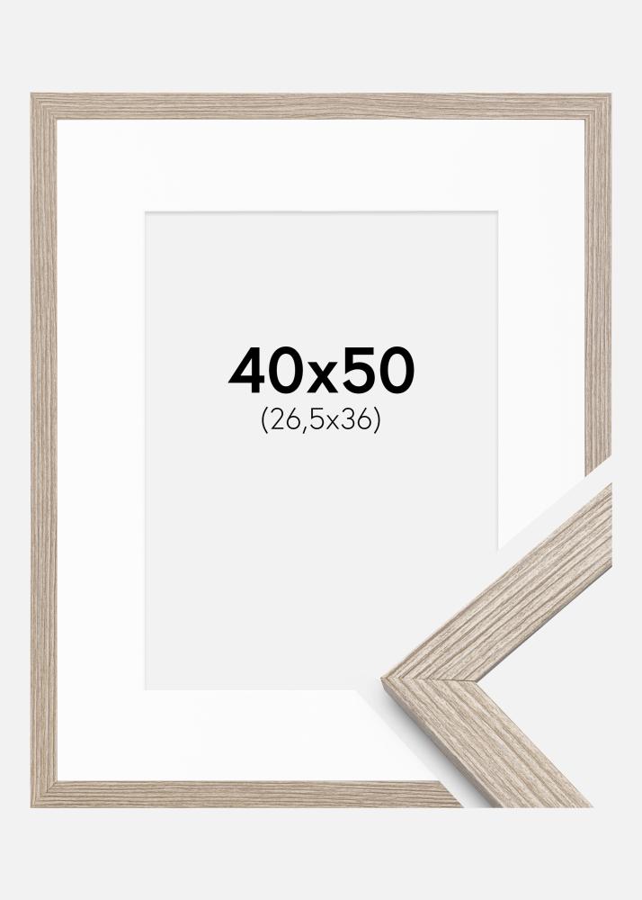 Cadre Stilren Chêne Greige 40x50 cm - Passe-partout Blanc 27,5x37 cm