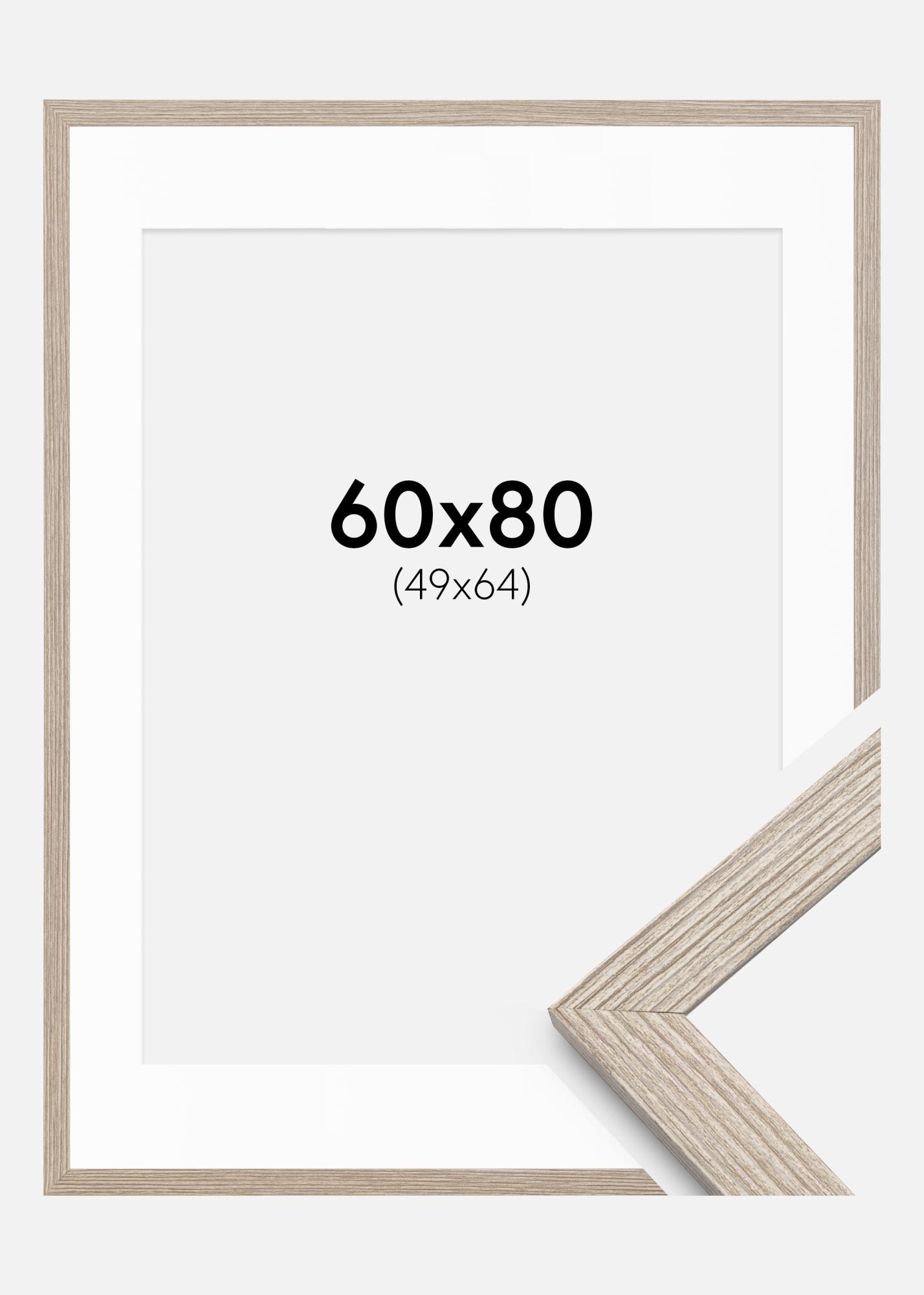 Cadre Stilren Chêne Greige 60x80 cm - Passe-partout Blanc 50x65 cm