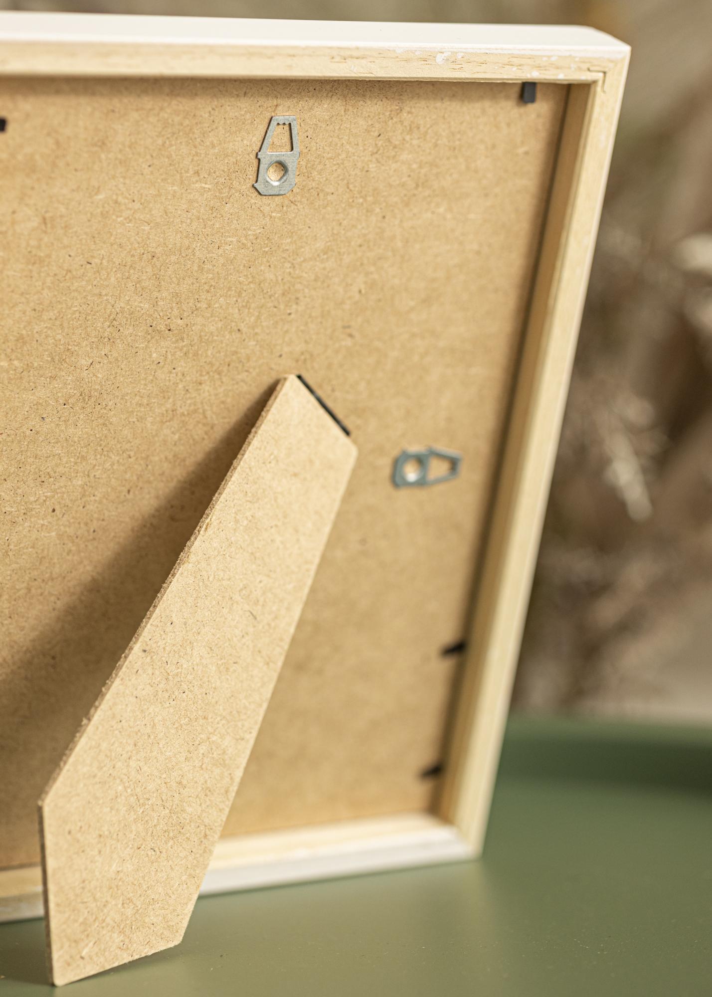 Un passe-partout blanc est inclus avec ce modèle. Vous insérez facilement votre image et le passe-partout dans le cadre en retirant simplement le carton de fond à l'aide des broches pliables à l'arrière et placez ainsi votre décoration murale dans le cadre.