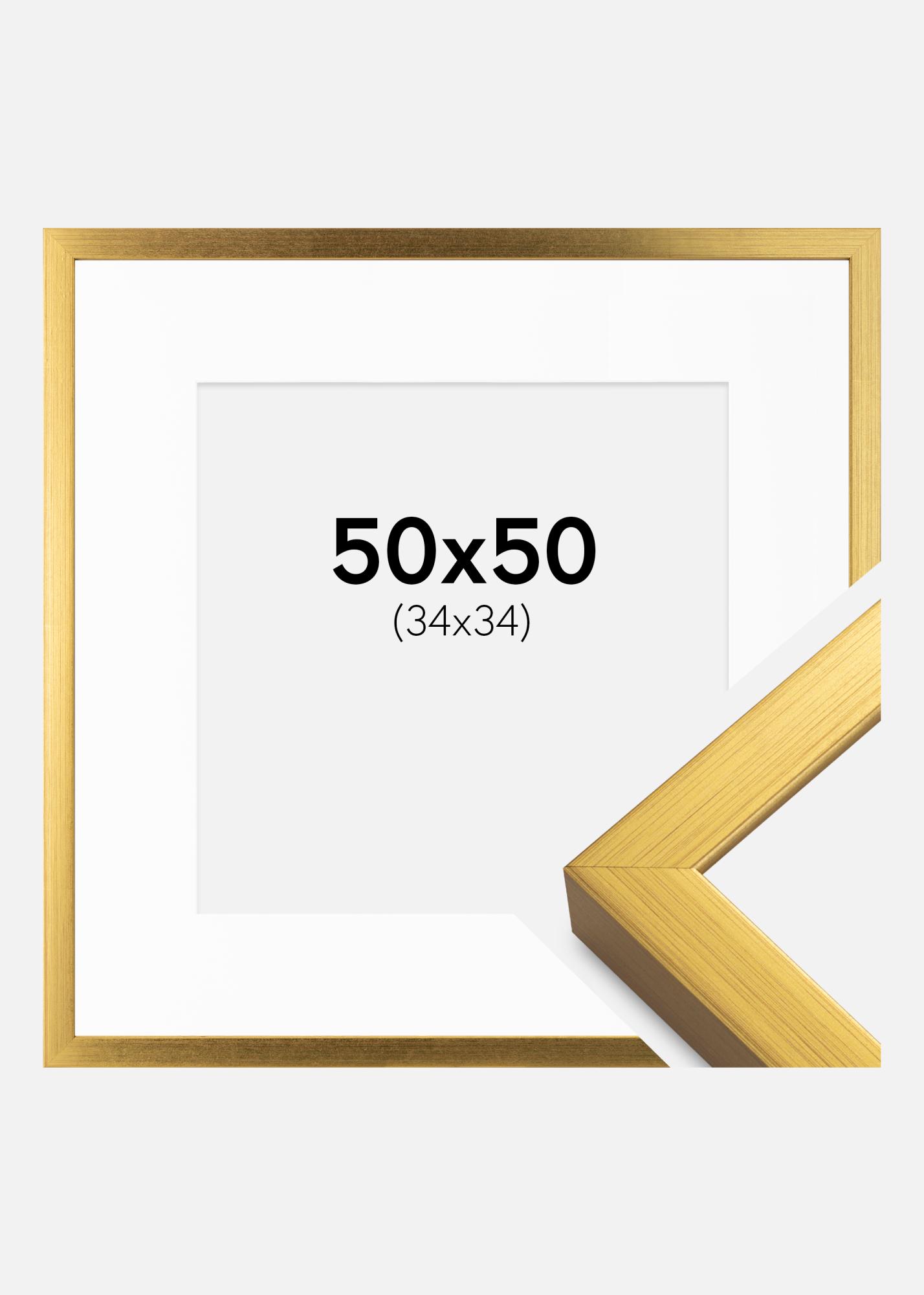 Cadre Falun Or 50x50 cm - Passe-partout Blanc 35x35 cm