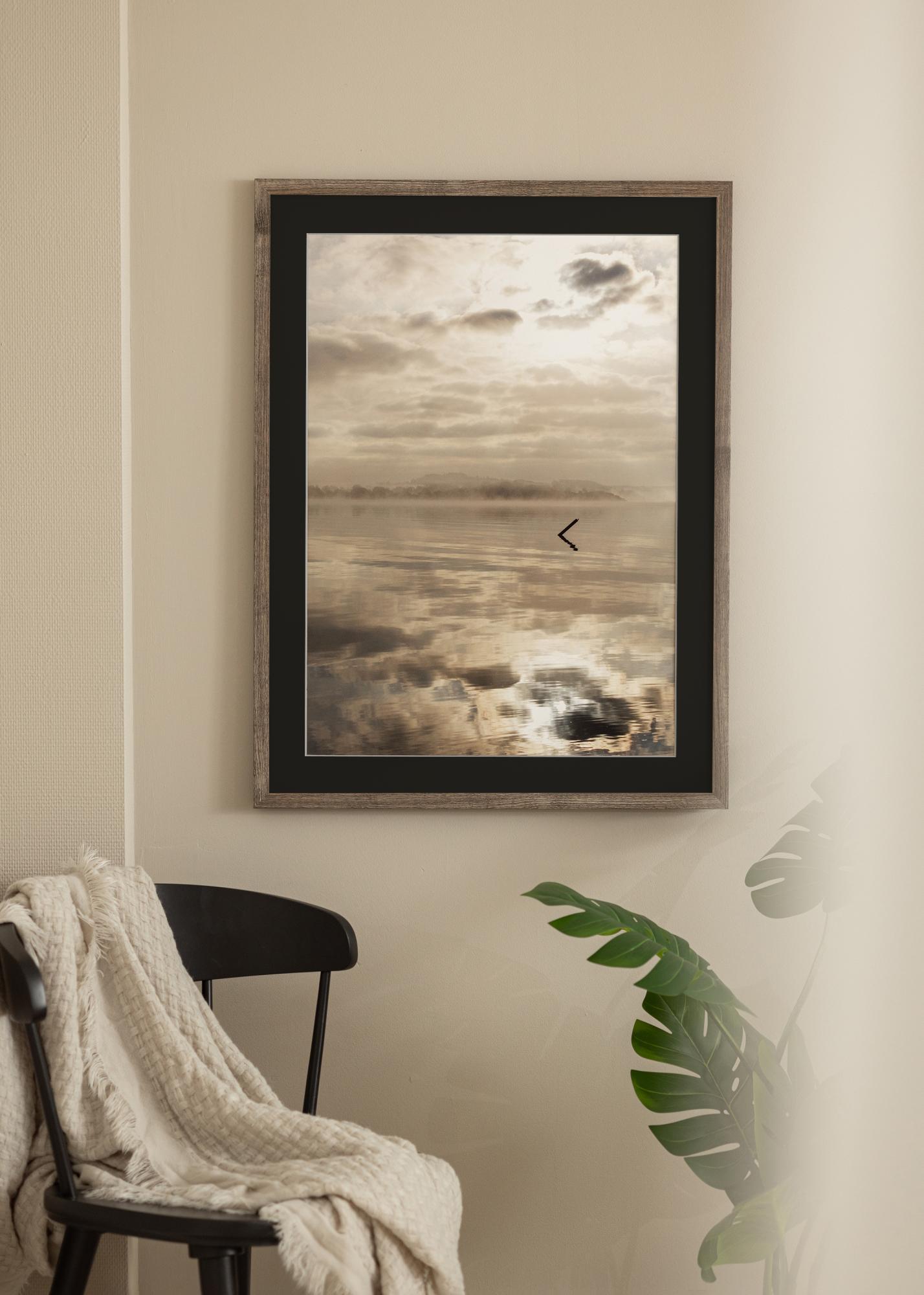 Forfait comprenant un cadre photo et un passe-partout noir inclus. Sur l'image du produit vous pouvez voir les dimensions du cadre (indiquées en gras) et les dimensions intérieures du passe-partout (indiquées entre parenthèses). Veuillez noter que les dimensions intérieures du passe-partout doivent toujours être inférieures de 1 cm à la taille de l'image souhaitée.