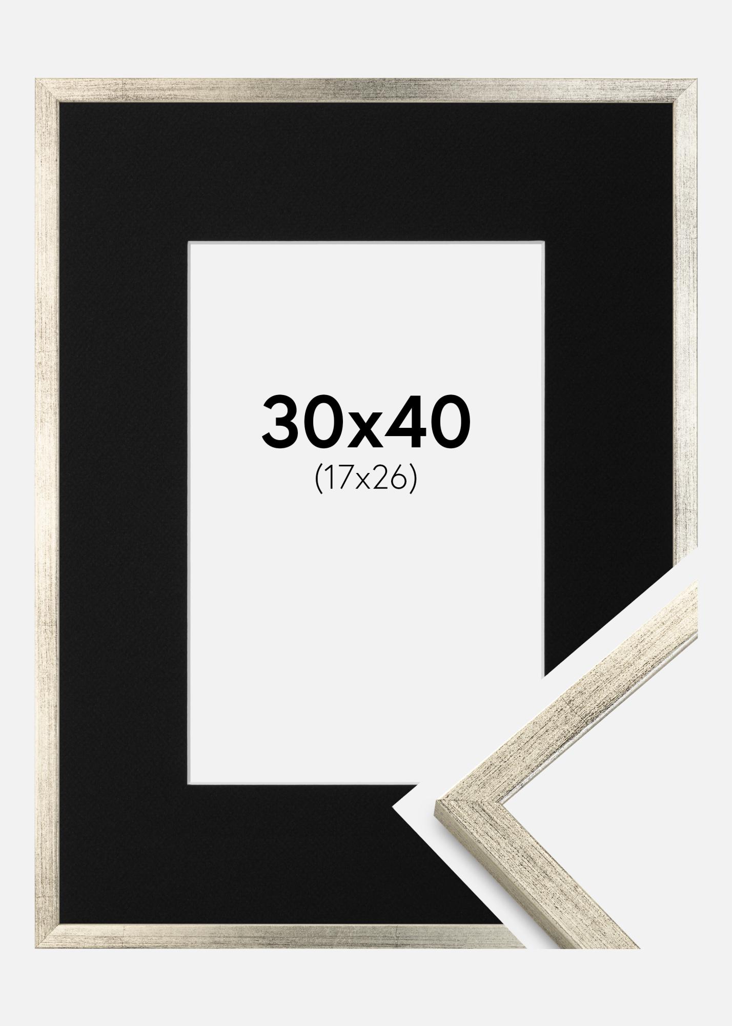 Cadre Galant Argent 30x40 cm - Passe-partout Noir 18x27 cm