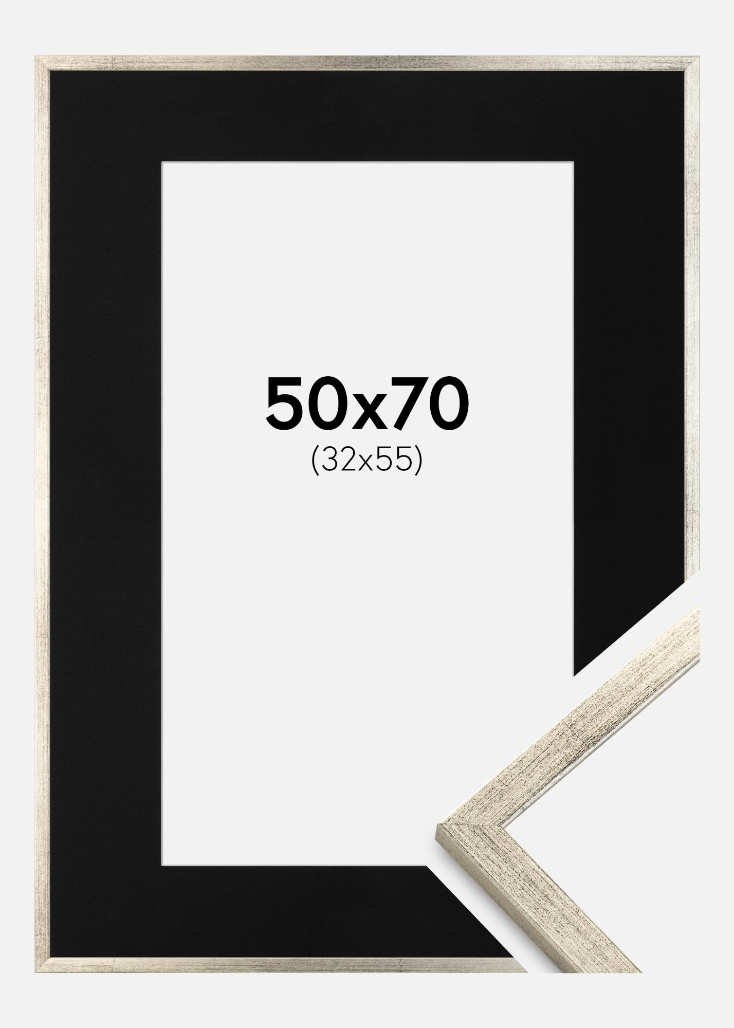 Cadre Galant Argent 50x70 cm - Passe-partout Noir 33x56 cm