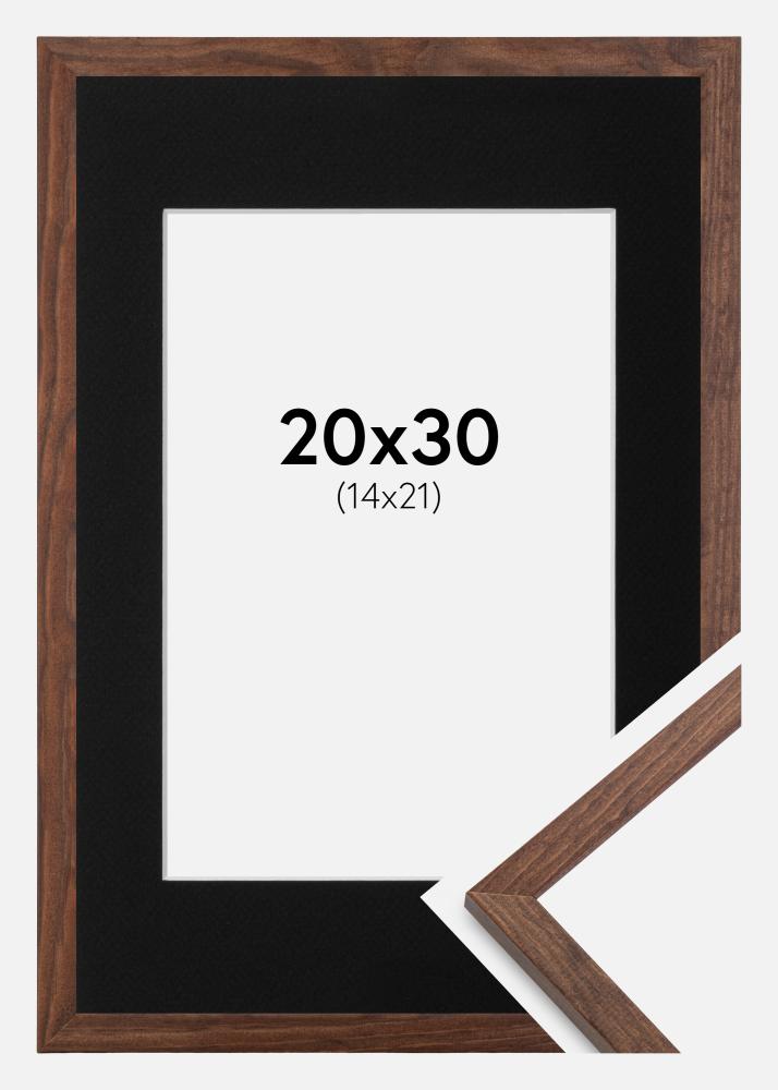 Cadre Galant Noyer 20x30 cm - Passe-partout Noir 15x22 cm