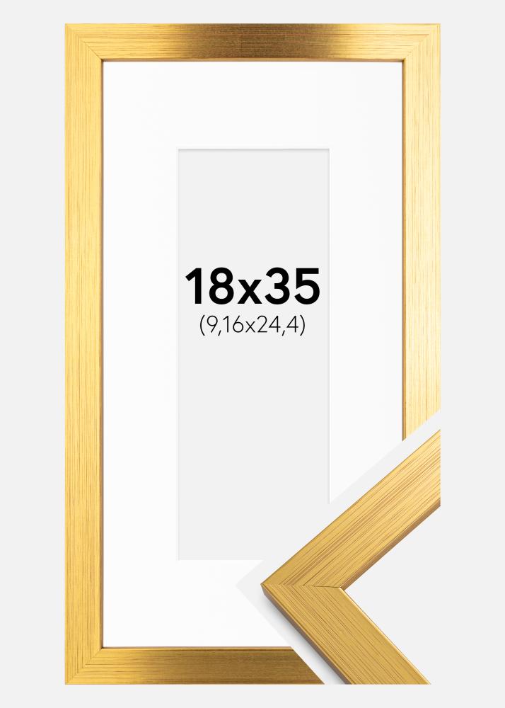Cadre Gold Wood 18x35 cm - Passe-partout Blanc 4x10 inches