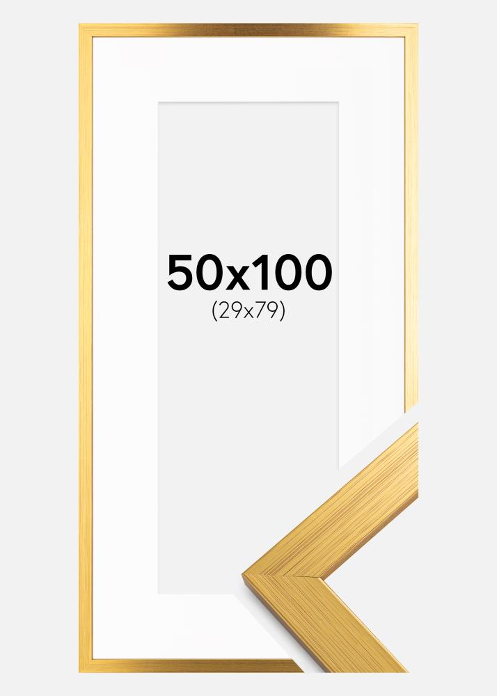 Cadre Gold Wood 50x100 cm - Passe-partout Blanc 30x80 cm