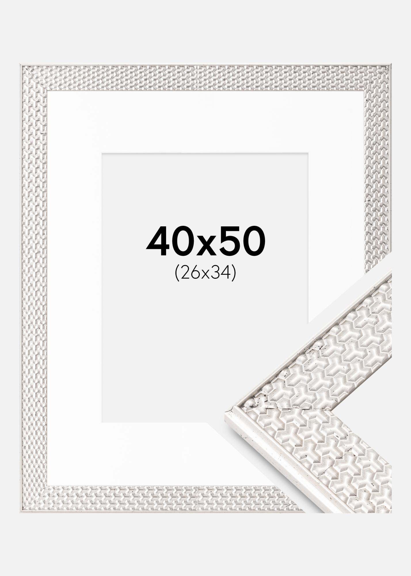 Cadre Grace Argent 40x50 cm - Passe-partout Blanc 27x35 cm