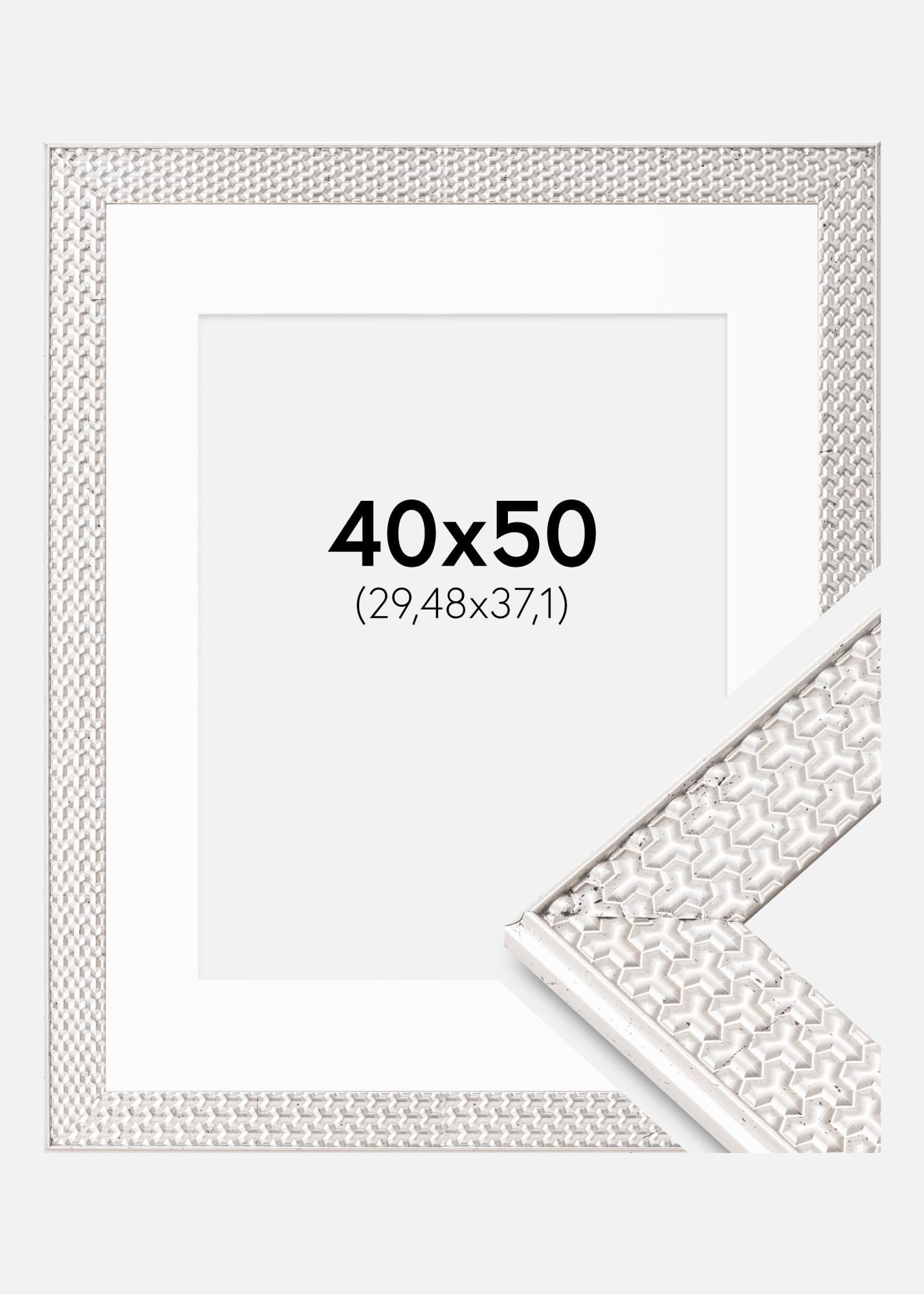 Cadre Grace Argent 40x50 cm - Passe-partout Blanc 12x15 inches