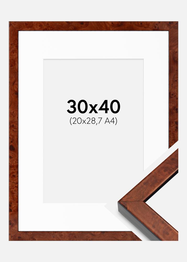 Cadre Hermes Noyer Broussiné 30x40 cm - Passe-partout Blanc 21x29,7 cm
