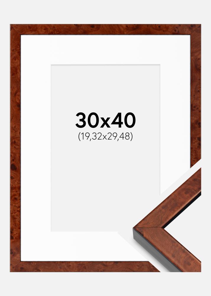 Cadre Hermes Noyer Européen 30x40 cm - Passe-partout Blanc 8x12 inches