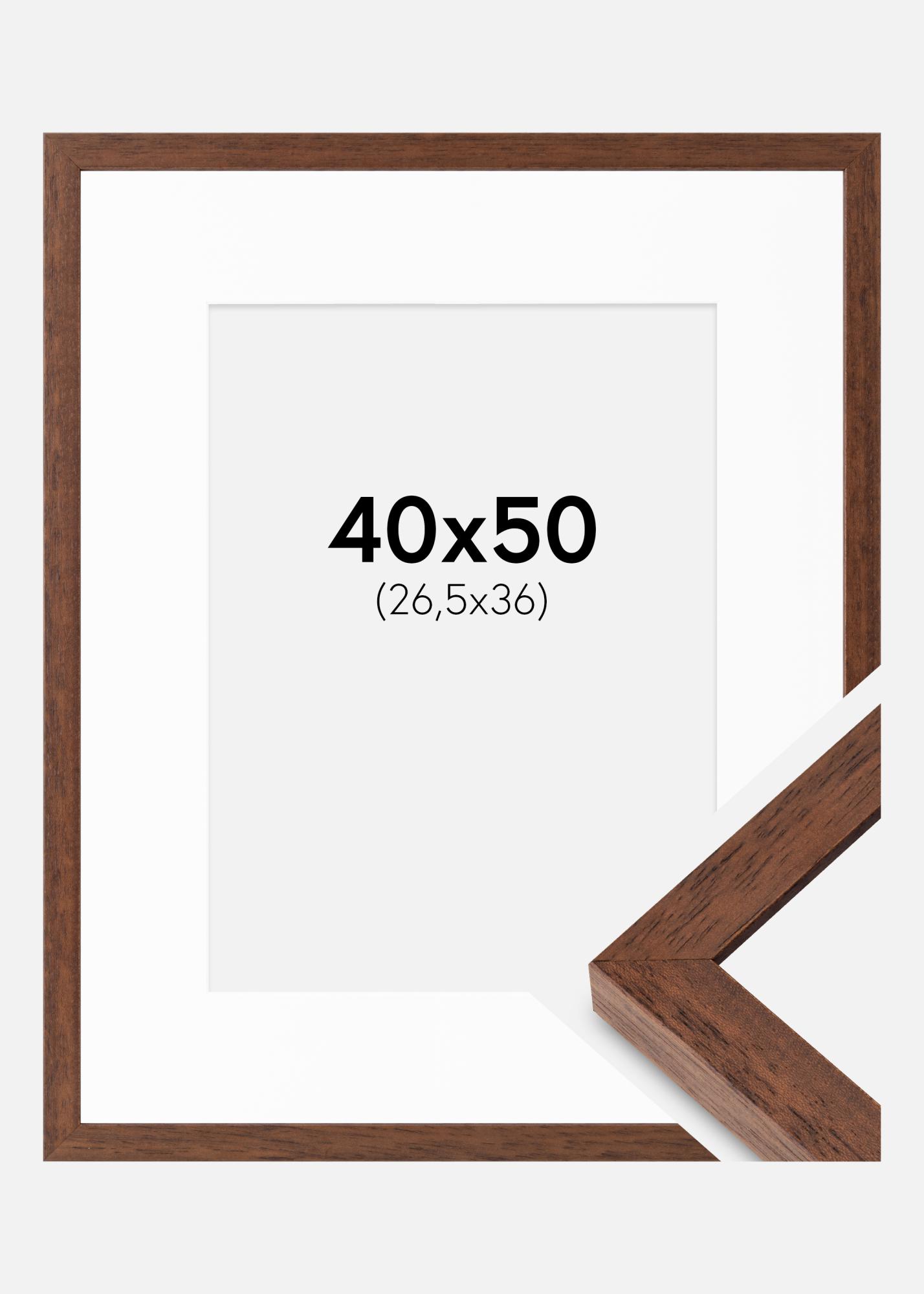 Cadre Hermes Teak 40x50 cm - Passe-partout Blanc 27,5x37 cm