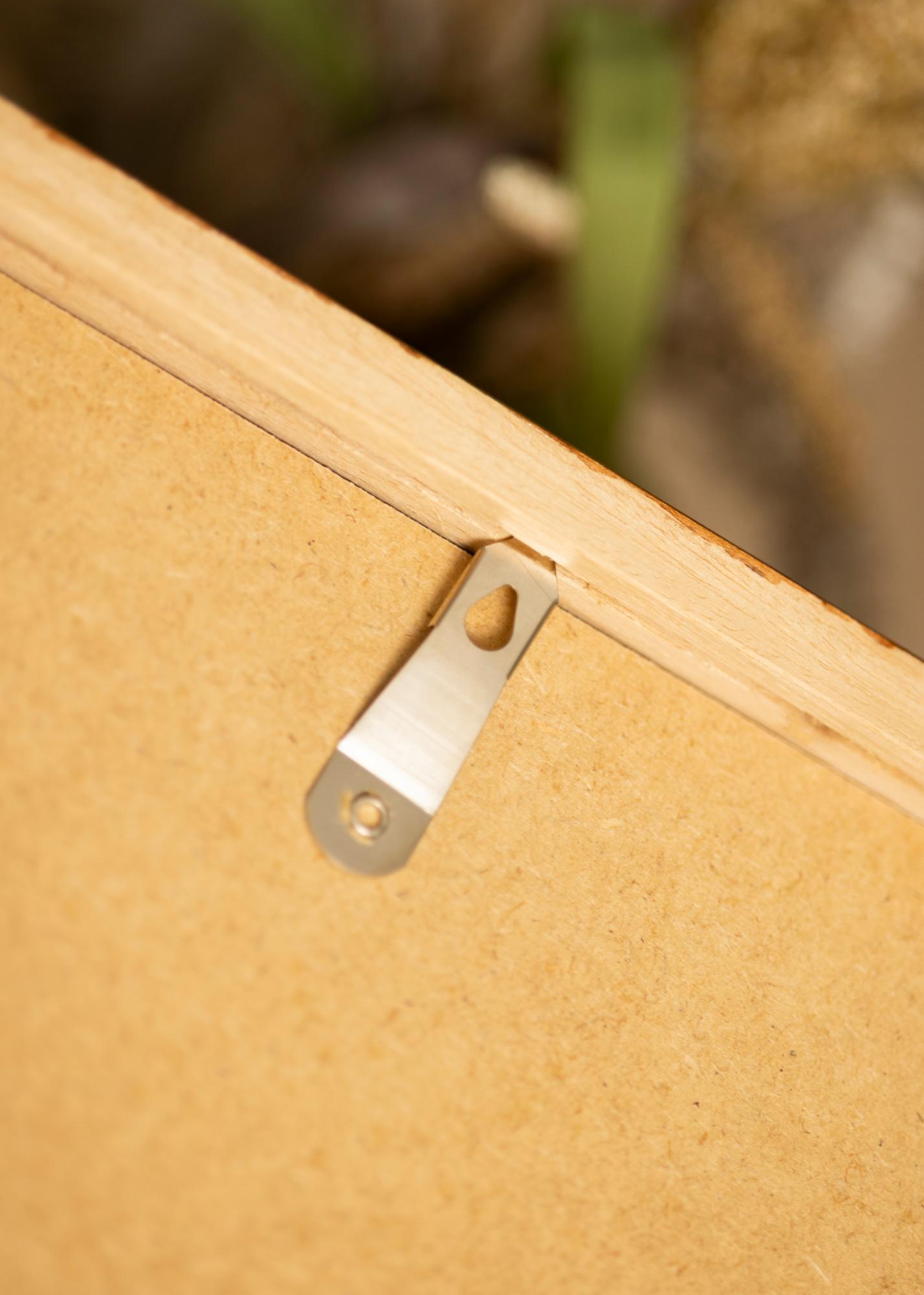 Fabriqué en bois d'ayous robuste, ce cadre offre non seulement un look esthétique mais aussi une construction durable. De plus, le cadre est produit aux Pays-Bas et est équipé de crochets en métal pratiques à l'arrière, permettant une accroche facile en mode paysage ou portrait.