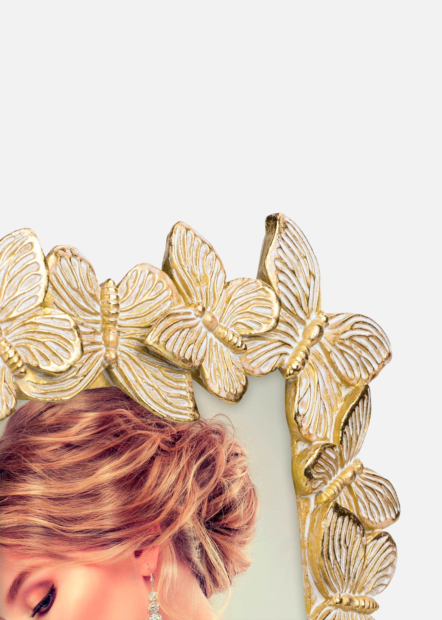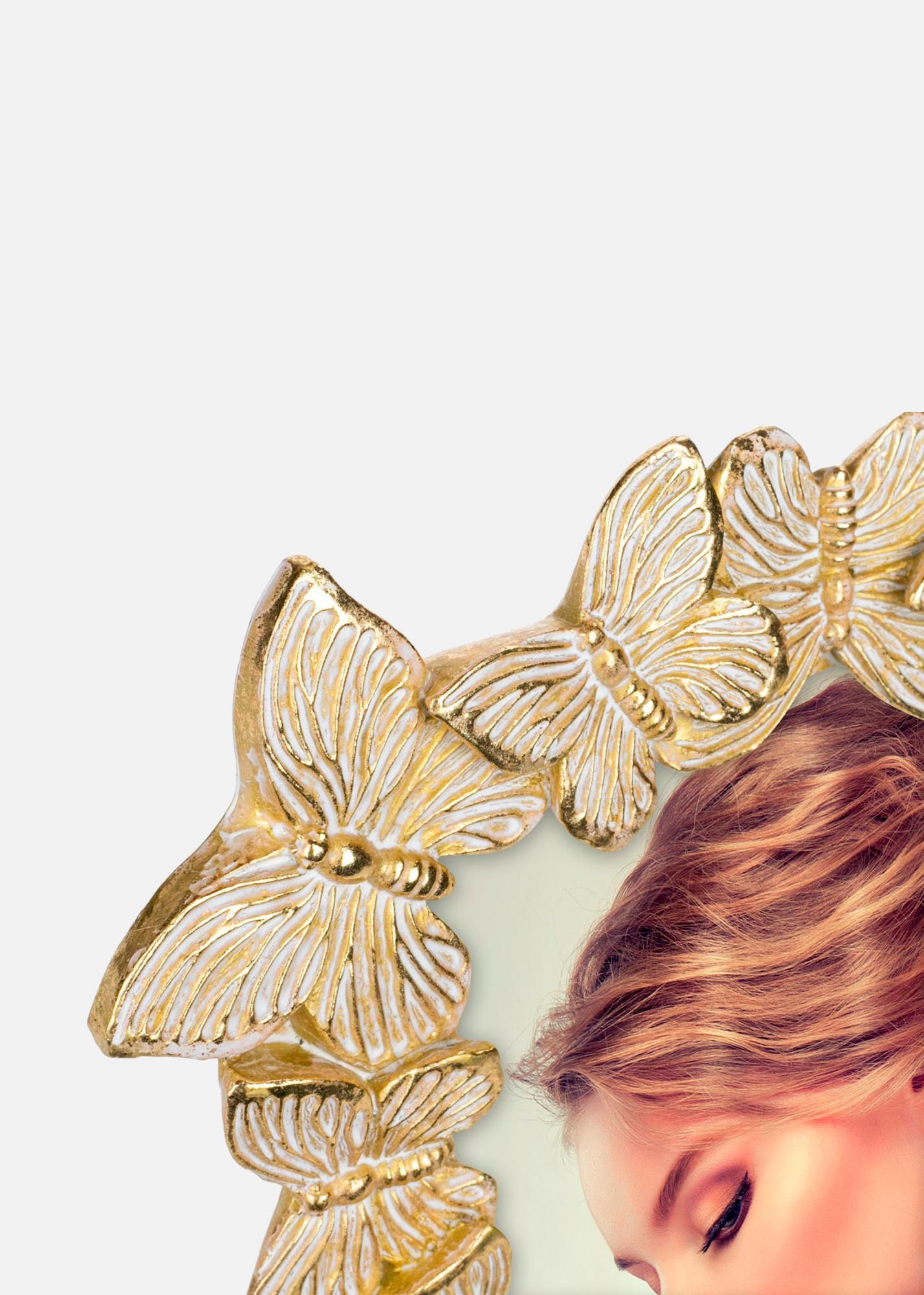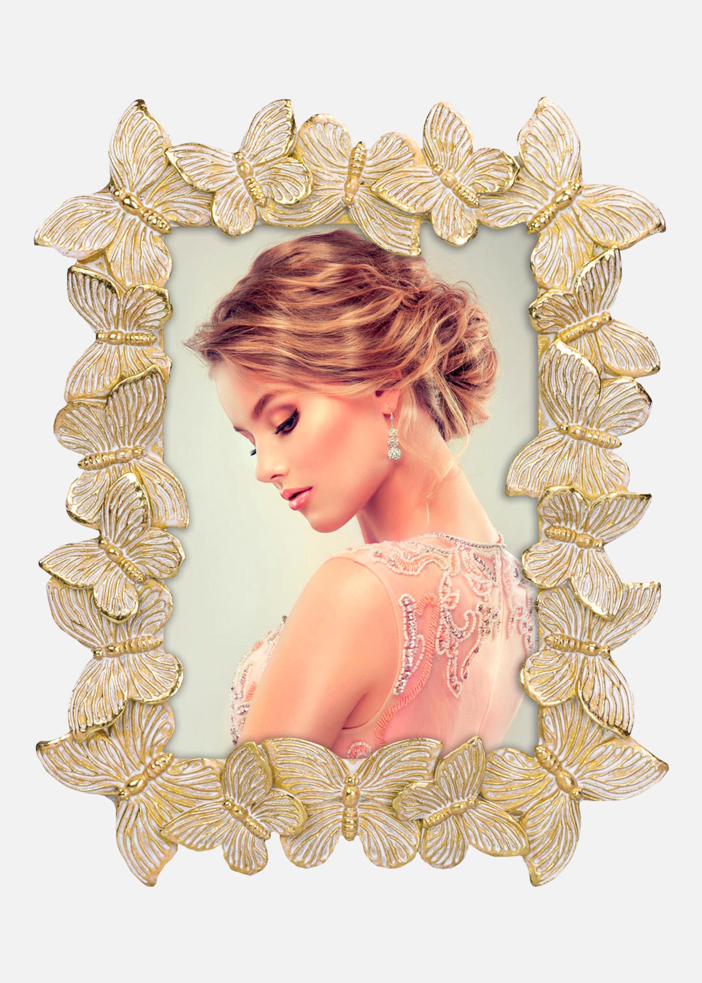 Découvrez la beauté envoûtante de notre cadre portrait de 13x18 cm, un véritable accroche-regard pour votre maison. Ce cadre photo unique est orné d'un profil détaillé avec des papillons en or et blanc, offrant une touche ludique et élégante à vos photos préférées.