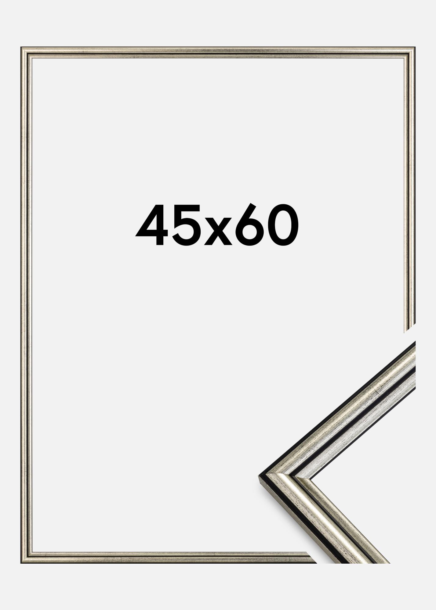Découvrez l'élégance et le design sophistiqué de notre cadre argenté de 45x60 cm, parfait pour mettre en valeur vos photos ou œuvres d'art préférées. Ce cadre photo est un détail élégant dans n'importe quelle pièce, avec ses touches noires subtiles et ses lignes noires qui lui donnent un caractère unique.