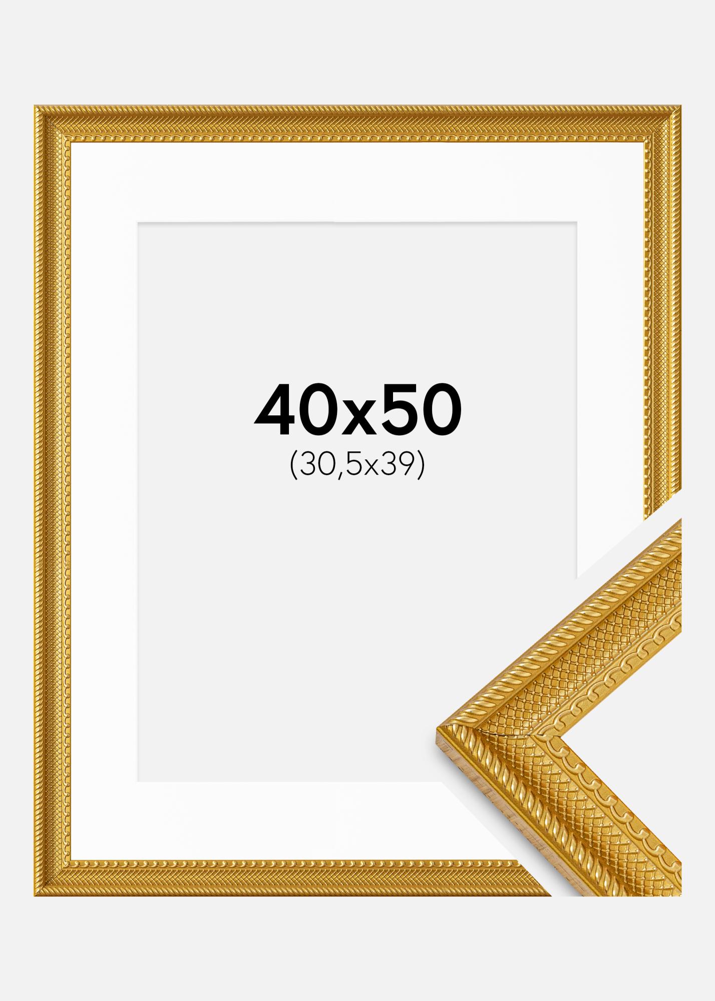 Cadre Lattice Or 40x50 cm - Passe-partout Blanc 31,5x40 cm