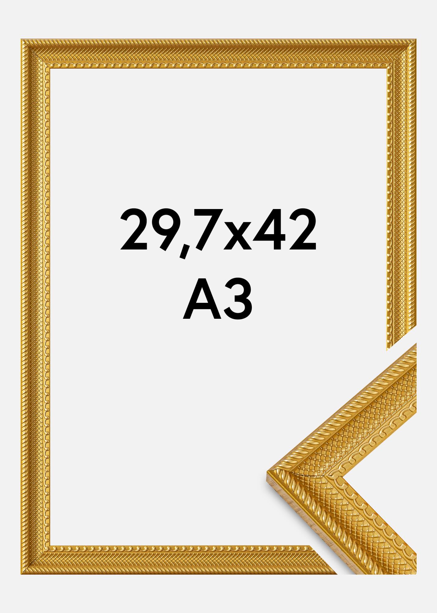 Ce cadre photo élégant en or est une parfaite combinaison de design classique et de fonctionnalité moderne. Avec ses motifs détaillés le long des bords, il offre une sensation luxueuse qui rehausse chaque œuvre d'art ou photographie. Le cadre est fabriqué en matériau composite, ce qui lui confère une structure robuste et durable. Il est conçu pour s'adapter à des sujets de taille 29,7x42 cm (A3), ce qui le rend idéal pour exposer vos souvenirs préférés d'une manière élégante.