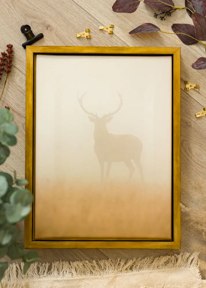 Le cadre est fabriqué en pin, ce qui garantit une construction durable et stable. La couleur dorée du cadre apporte une touche de sophistication qui s'adapte parfaitement aux intérieurs modernes et classiques. Que vous vouliez mettre en valeur un portrait de famille ou une belle peinture de paysage, ce cadre donnera à votre œuvre l'attention qu'elle mérite.