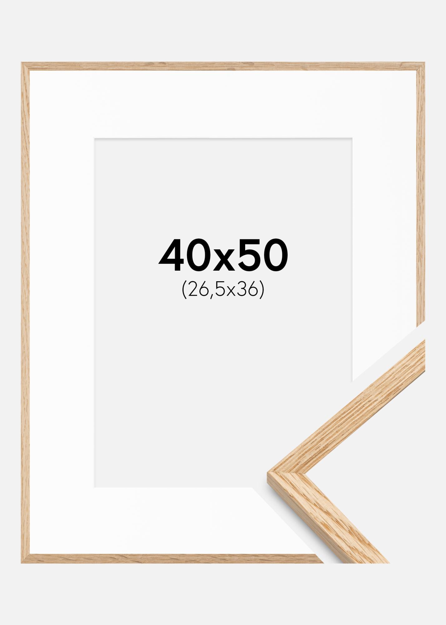 Cadre Mince Chêne 40x50 cm - Passe-partout Blanc 27,5x37 cm