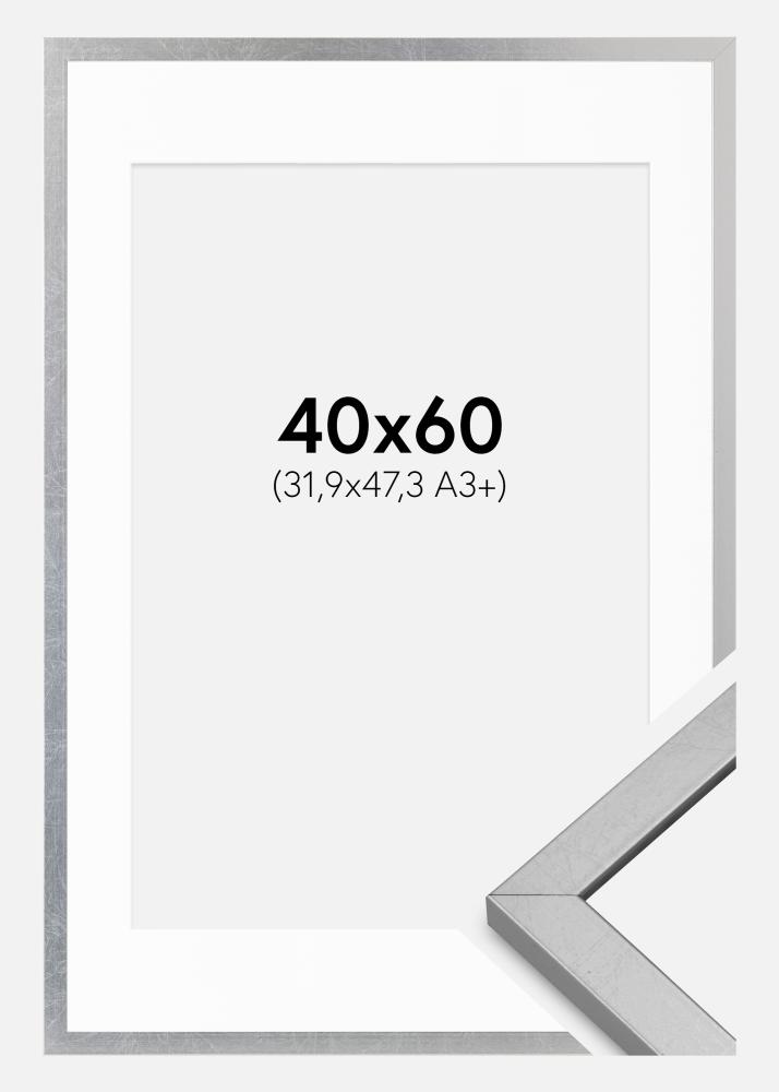 Cadre Minerva Argent 40x60 cm - Passe-partout Blanc 32,9x48,3 cm