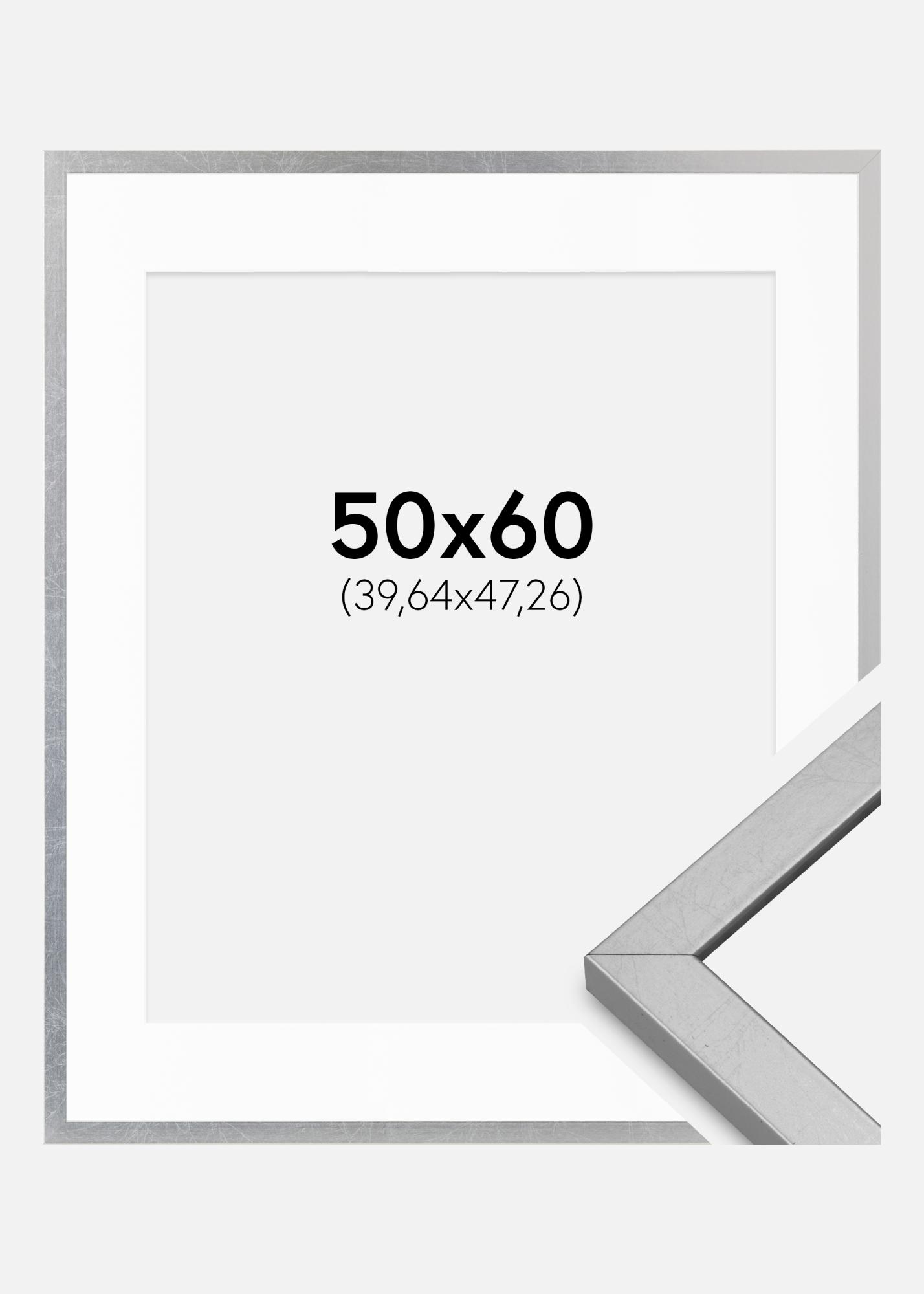 Cadre Minerva Argent 50x60 cm - Passe-partout Blanc 16x19 inches