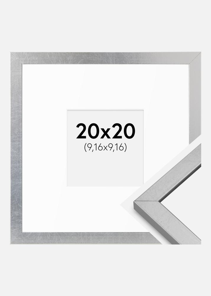 Cadre Minerva Argent 20x20 cm - Passe-partout Blanc 4x4 inches