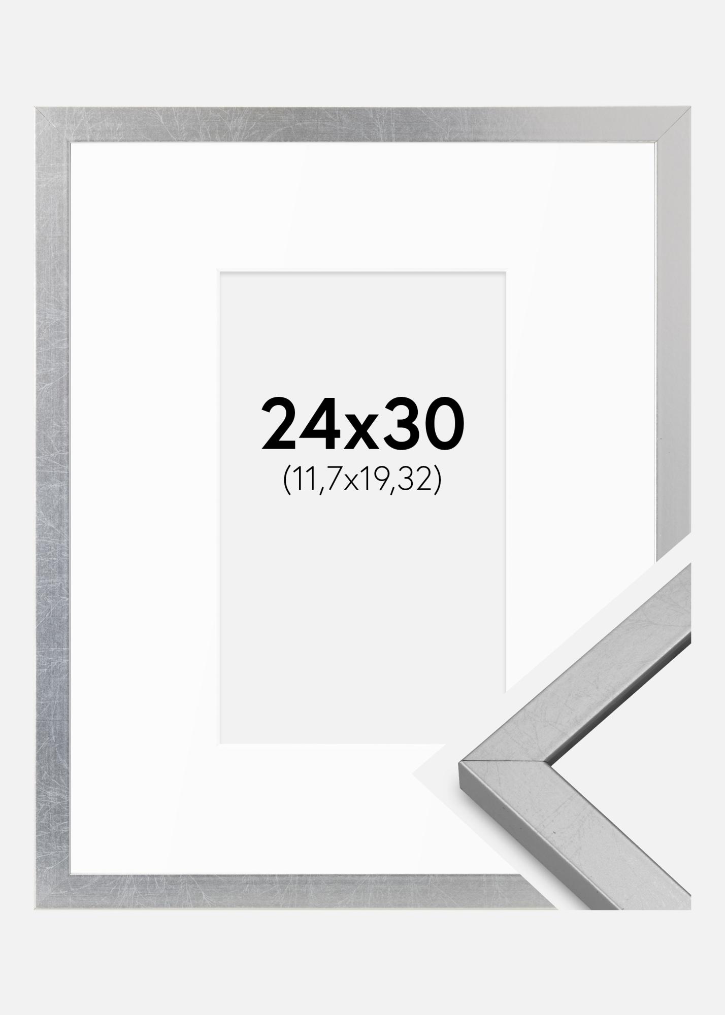 Cadre Minerva Argent 24x30 cm - Passe-partout Blanc 5x8 inches