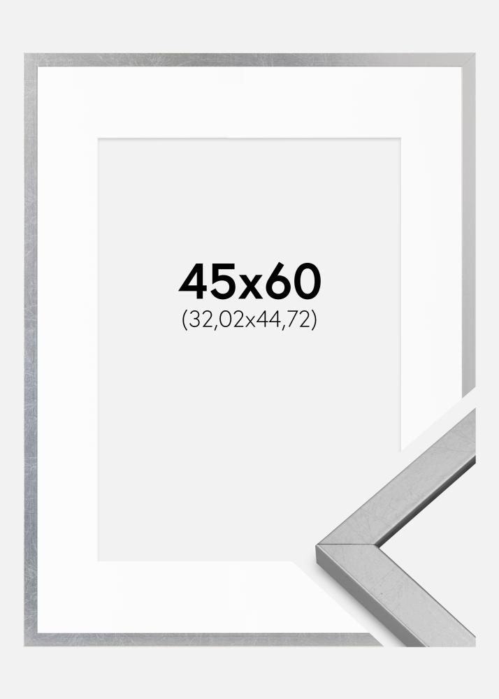 Cadre Minerva Argent 45x60 cm - Passe-partout Blanc 13x18 inches