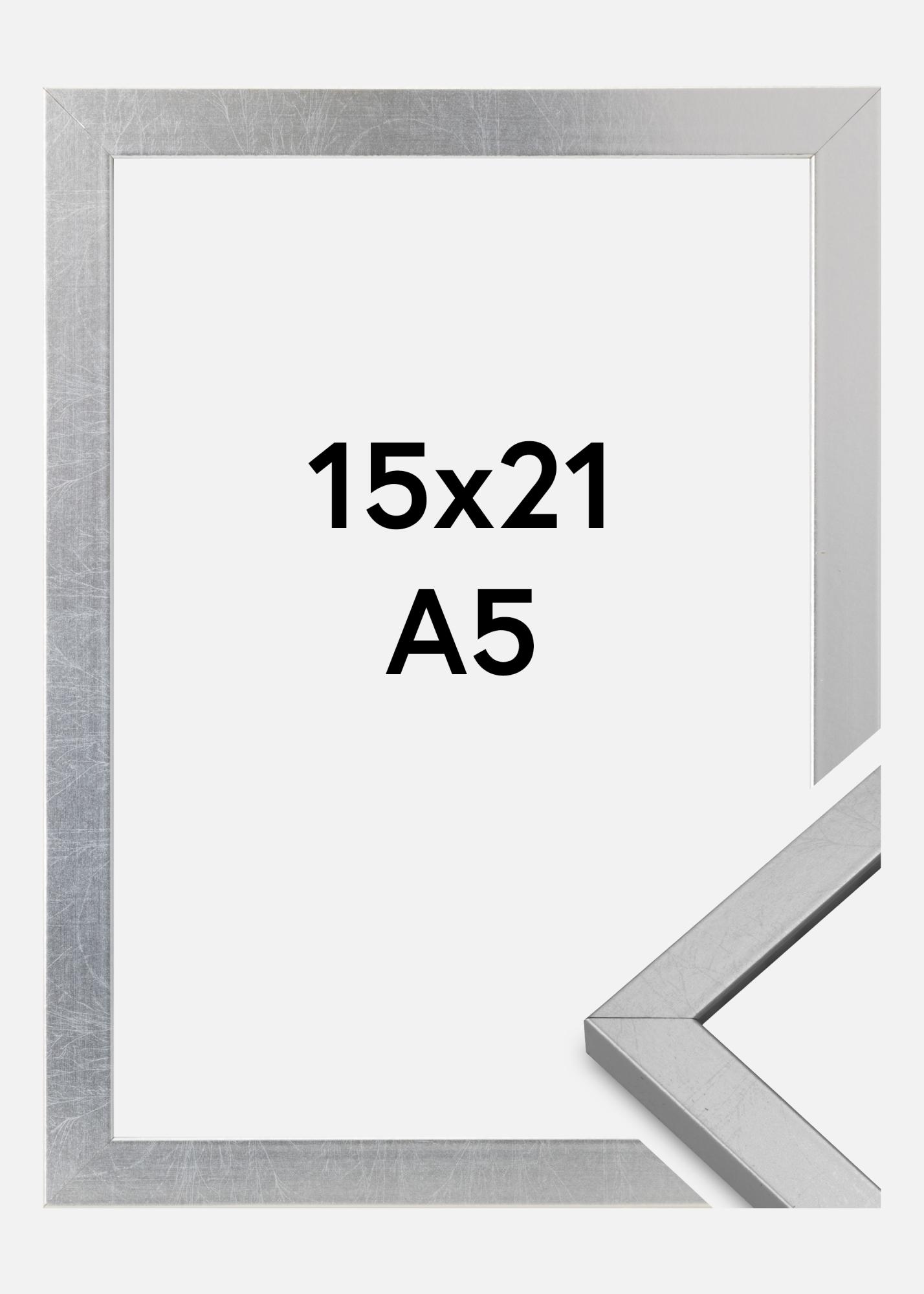 Donnez à vos souvenirs l'encadrement qu'ils méritent avec ce cadre photo élégant couleur argent. Avec une dimension de 15 x 21 cm (A5), il convient parfaitement à vos photos préférées ou à vos oeuvres d'art. Le profil mince du cadre, avec une baguette de 15 mm de largeur, complète sans prendre le dessus sur l'image qu'il encadre.