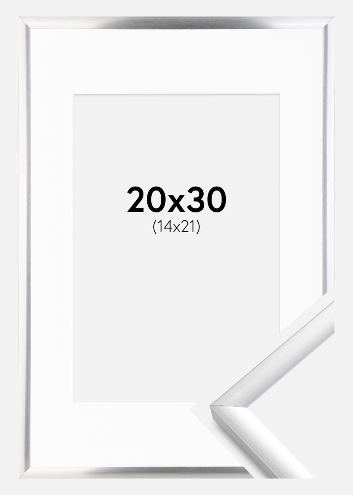 Cadre New Lifestyle Argent 20x30 cm - Passe-partout Blanc 15x22 cm