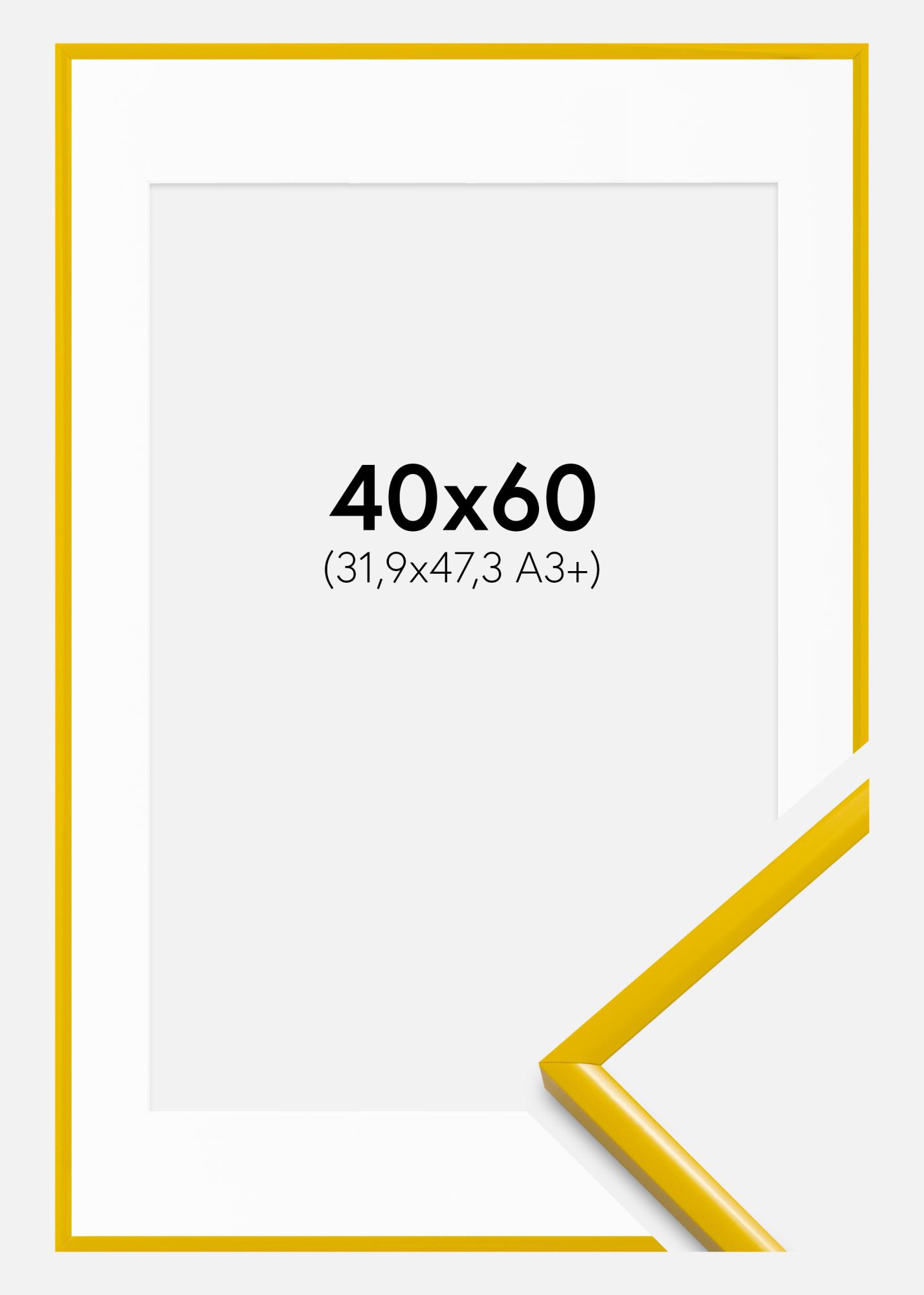 Le cadre a une largeur étroite de 9,8 mm et une profondeur de 16,5 mm, ce qui procure une sensation moderne et minimaliste. La surface brillante réfléchit la lumière magnifiquement et met en valeur la couleur jaune de manière sophistiquée. Avec des dimensions extérieures de 41,1x61,1 cm, ce cadre devient un détail saisissant sur votre mur.