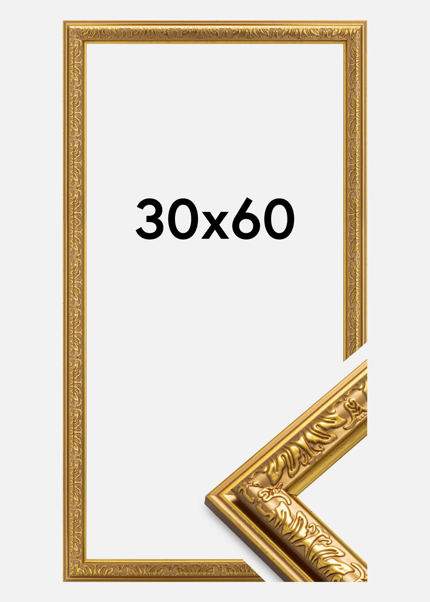 Ceci est un élégant cadre doré orné d'ornements décoratifs de style rétro. Le cadre a beaucoup de caractère et devient un beau détail de décoration sur votre mur, tout en ne détournant pas l'attention de votre motif. À l'arrière du cadre, il y a un support mural qui vous permet de monter le cadre en position verticale ou horizontale.