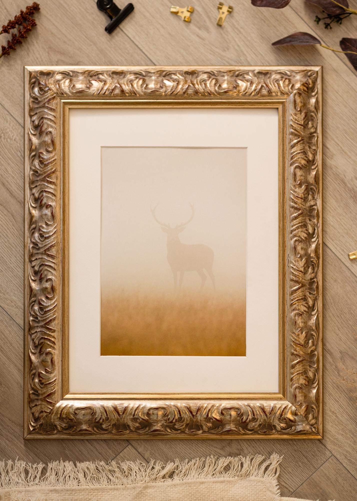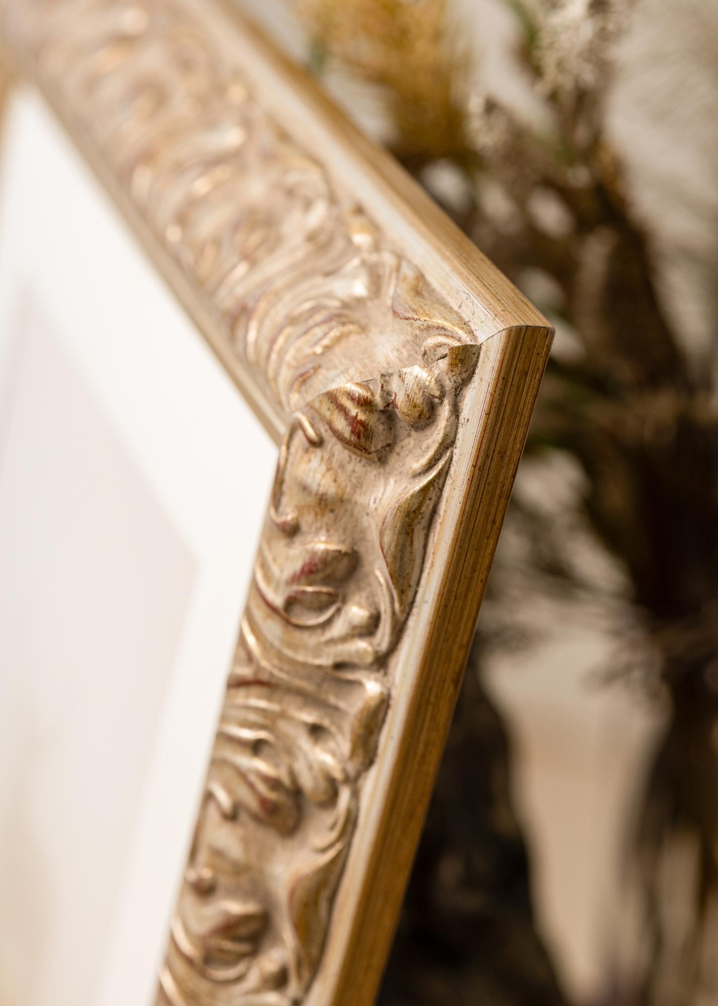 Cadre Odin Argent est un cadre sur mesure qui offre une combinaison parfaite d'élégance et de fonctionnalité. Avec sa finition argent antique, ses détails dorés subtils et ses légères touches de rouge, ce cadre photo procure une expression classique et sophistiquée qui rehausse chaque œuvre d'art ou photographie. Le design décoratif en fait un choix idéal pour des encadrements où une touche d'élégance est souhaitée.