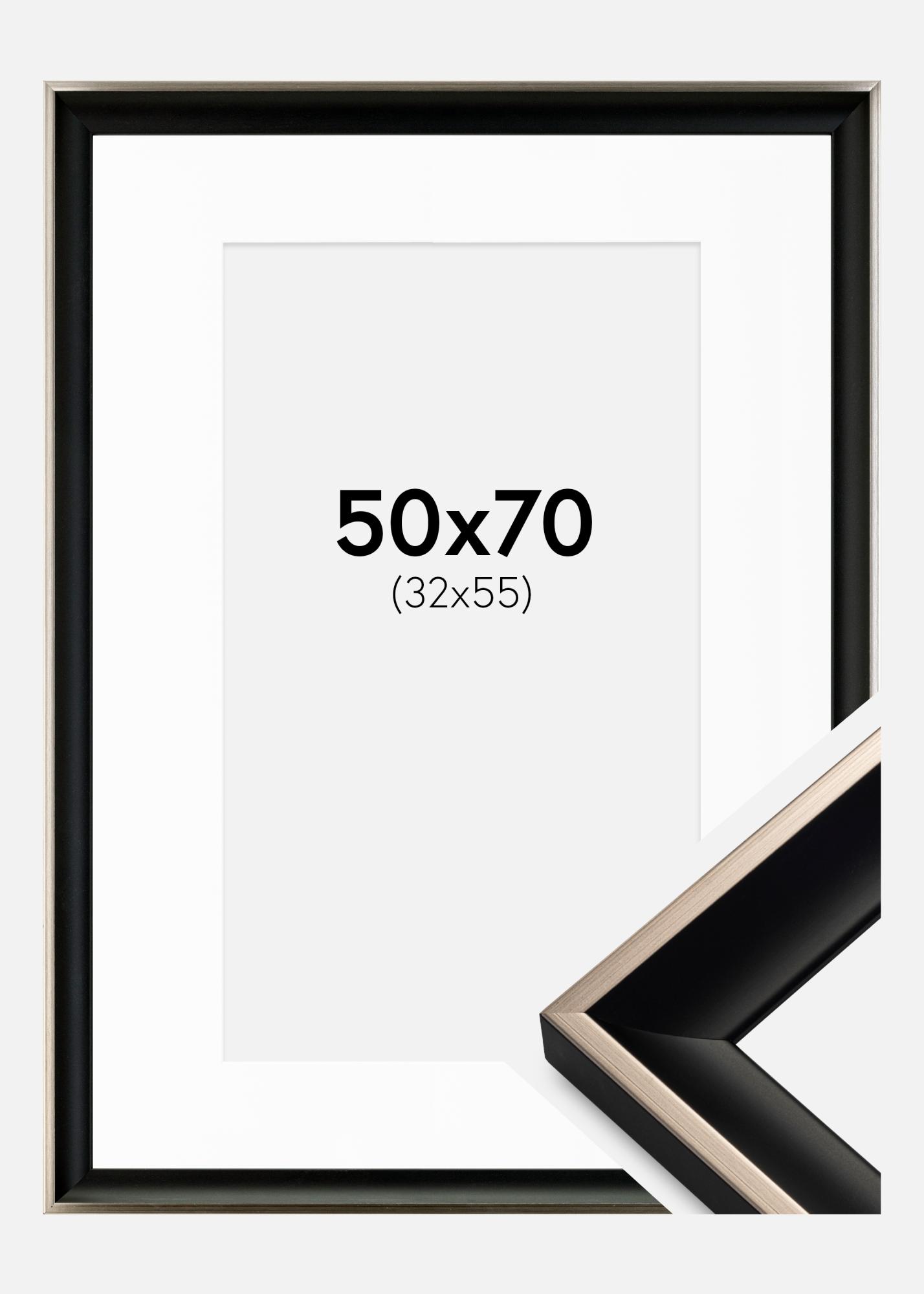 Cadre Öjaren Noir-Argent 50x70 cm - Passe-partout Blanc 33x56 cm