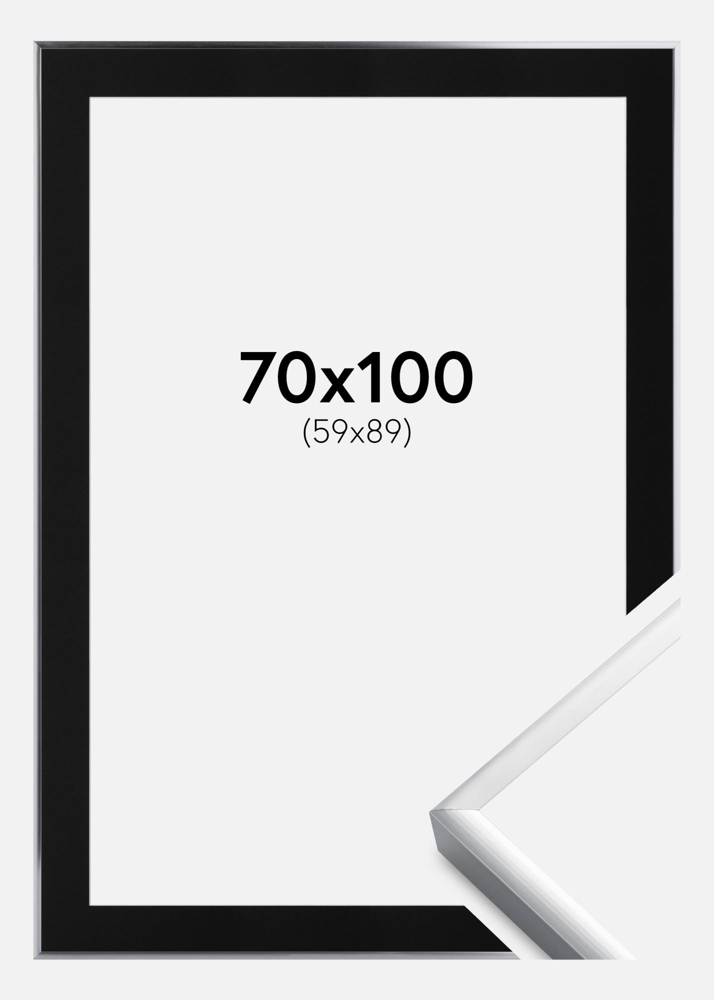 Cadre Poster Frame Aluminum Argent 70x100 cm - Passe-partout Noir 60x90 cm