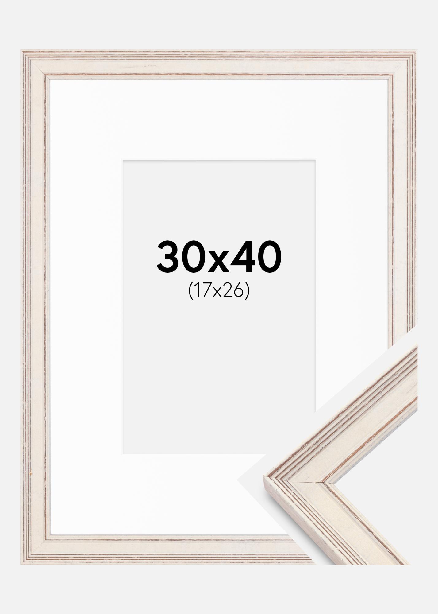Cadre Shabby Chic Blanc 30x40 cm - Passe-partout Blanc 18x27 cm