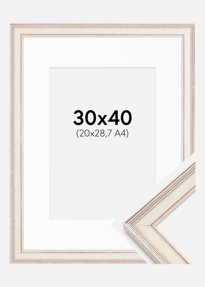Cadre Shabby Chic Blanc 30x40 cm - Passe-partout Blanc 21x29,7 cm (A4)