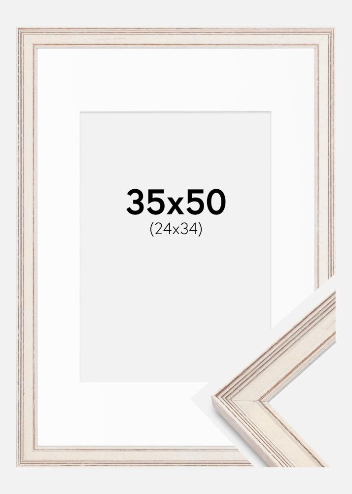 Cadre Shabby Chic Blanc 35x50 cm - Passe-partout Blanc 25x35 cm