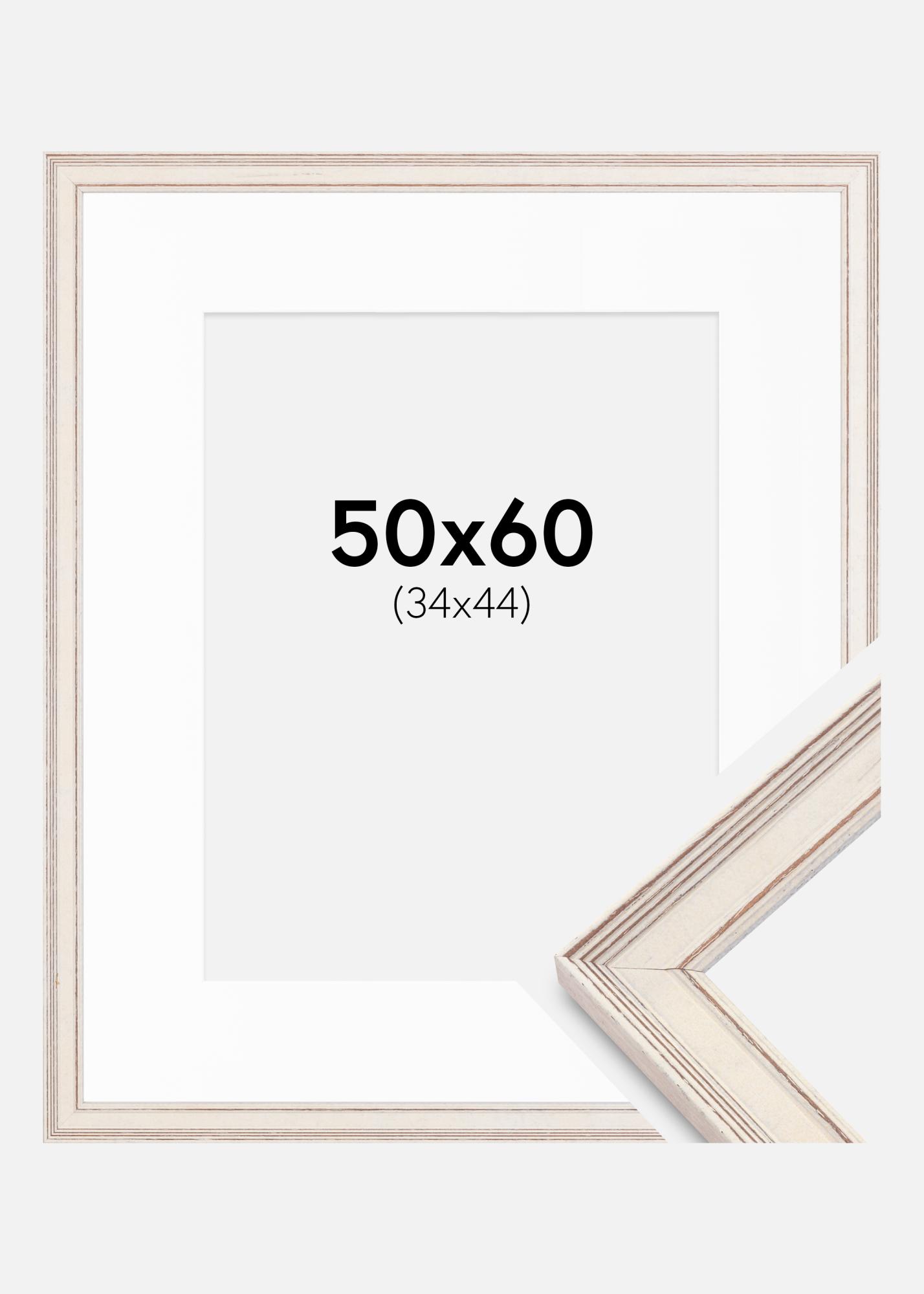 Cadre Shabby Chic Blanc 50x60 cm - Passe-partout Blanc 35x45 cm