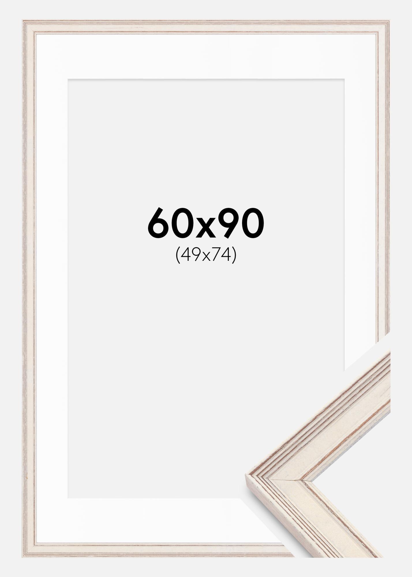 Cadre Shabby Chic Blanc 60x90 cm - Passe-partout Blanc 50x75 cm