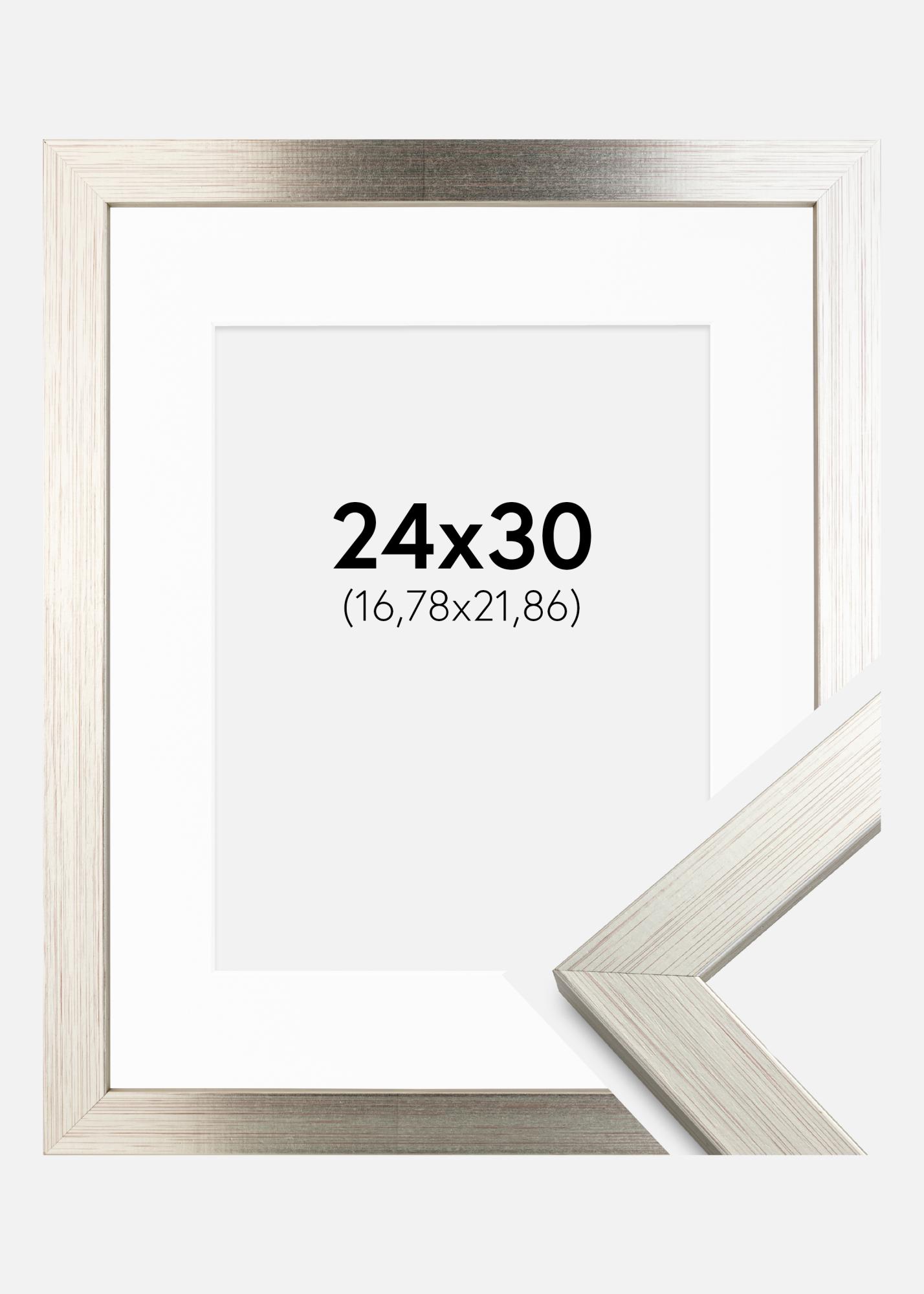 Cadre Silver Wood 24x30 cm - Passe-partout Blanc 7x9 inches