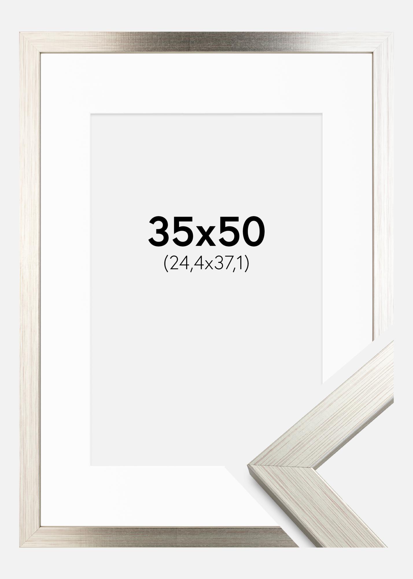 Cadre Silver Wood 35x50 cm - Passe-partout Blanc 10x15 inches