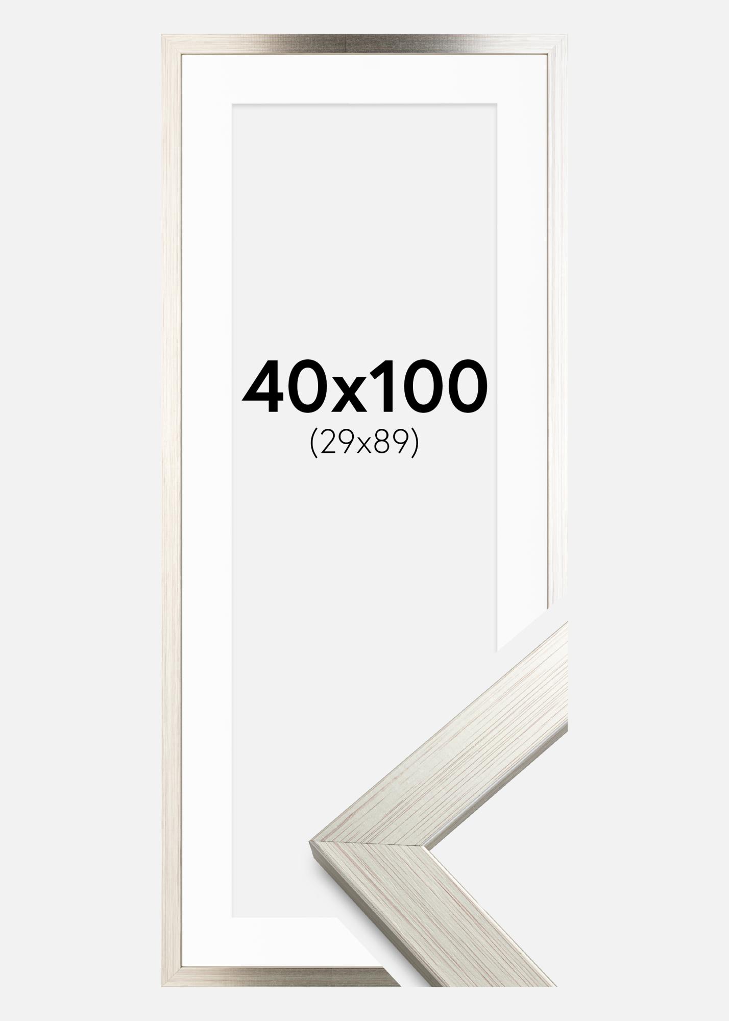 Cadre Silver Wood 40x100 cm - Passe-partout Blanc 30x90 cm