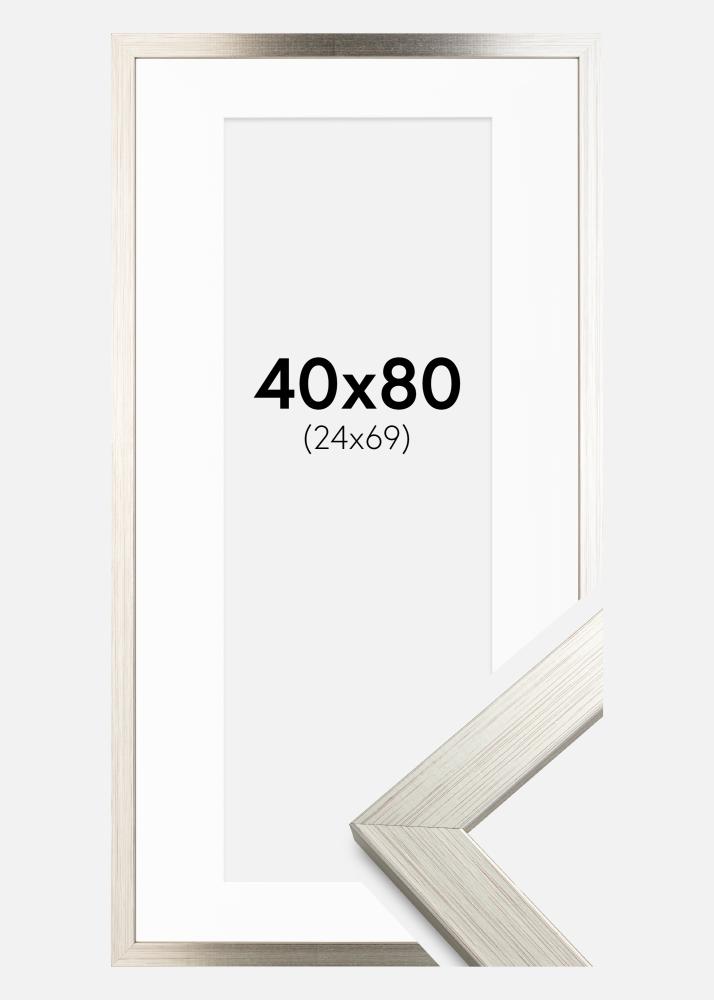 Cadre Silver Wood 40x80 cm - Passe-partout Blanc 25x70 cm