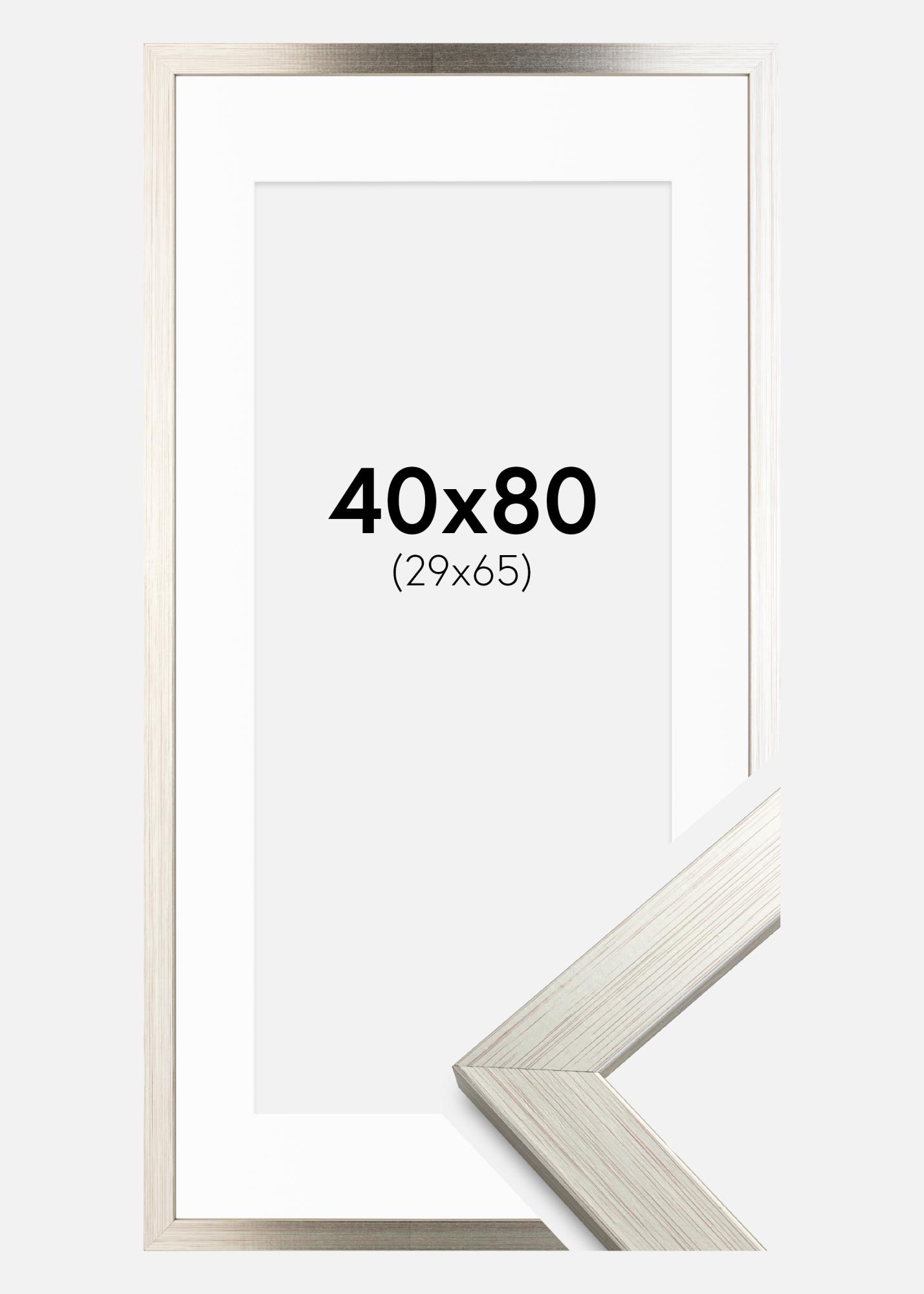 Cadre Silver Wood 40x80 cm - Passe-partout Blanc 30x66 cm