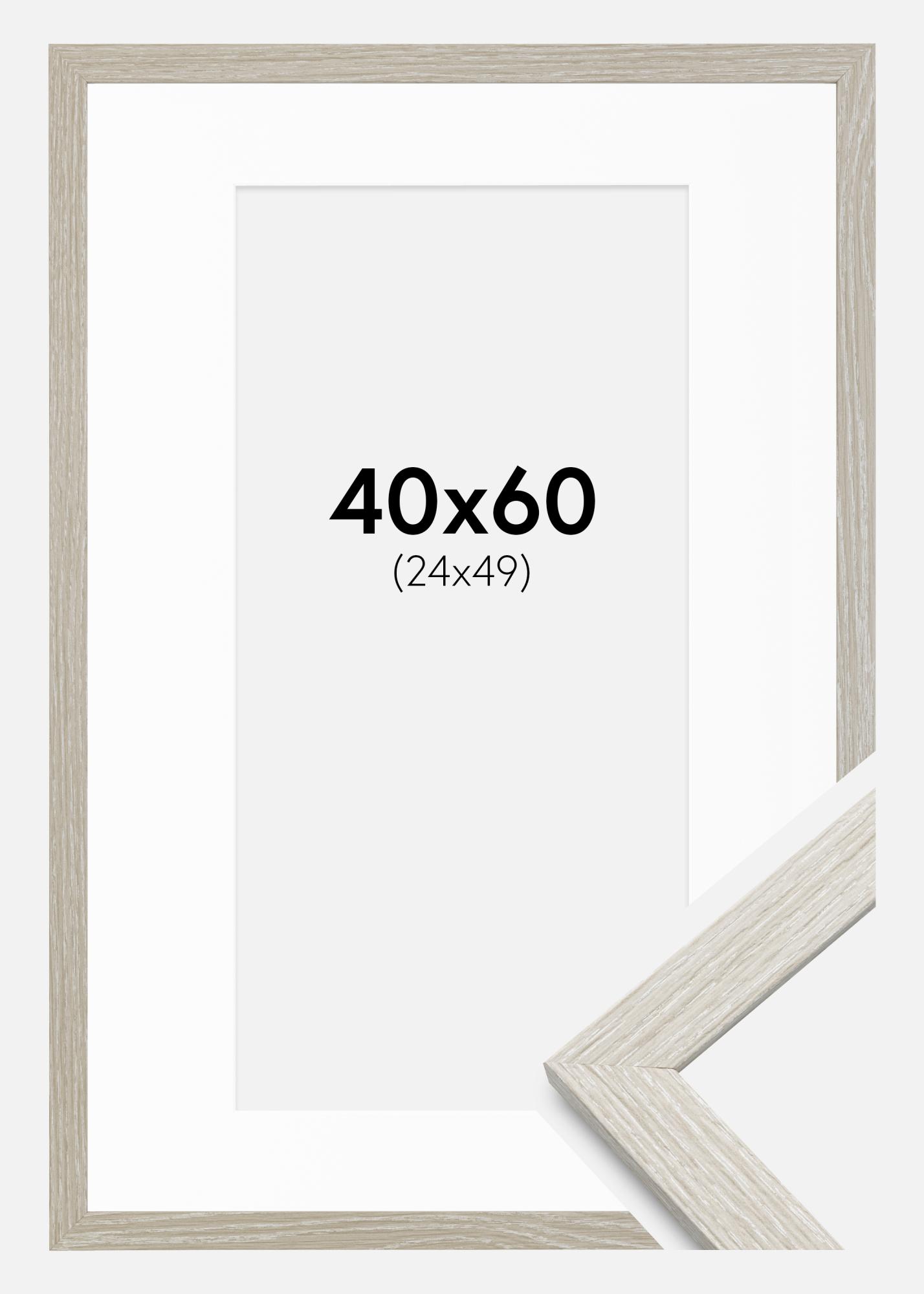 Cadre Stilren Chêne Gris Clair 40x60 cm - Passe-partout Blanc 25x50 cm
