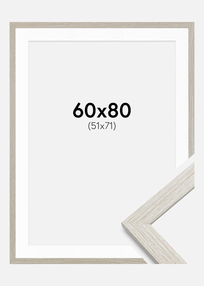 Cadre Stilren Chêne Gris Clair 60x80 cm - Passe-partout Blanc 52x72 cm