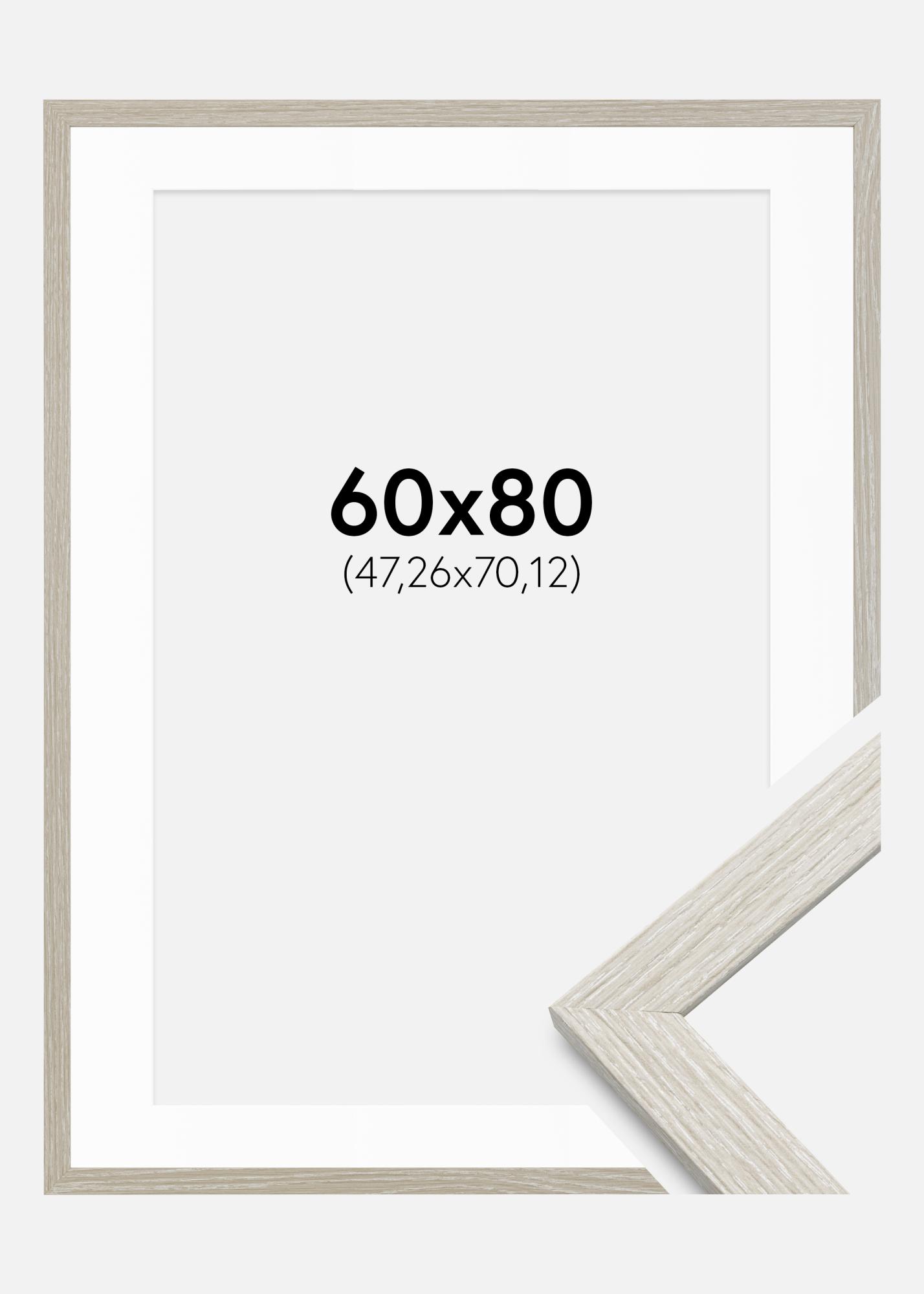 Cadre Stilren Chêne Gris Clair 60x80 cm - Passe-partout Blanc 19x28 inches