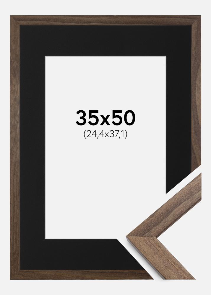 Forfait comprenant un cadre photo et un passe-partout noir inclus. Sur l'image du produit vous pouvez voir les dimensions du cadre (indiquées en gras) et les dimensions intérieures du passe-partout (indiquées entre parenthèses). Veuillez noter que les dimensions intérieures du passe-partout doivent toujours être inférieures de 1 cm à la taille de l'image souhaitée.