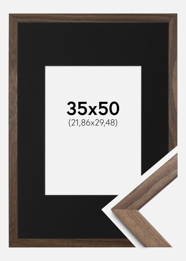 Forfait comprenant un cadre photo et un passe-partout noir inclus. Sur l'image du produit vous pouvez voir les dimensions du cadre (indiquées en gras) et les dimensions intérieures du passe-partout (indiquées entre parenthèses). Veuillez noter que les dimensions intérieures du passe-partout doivent toujours être inférieures de 1 cm à la taille de l'image souhaitée.