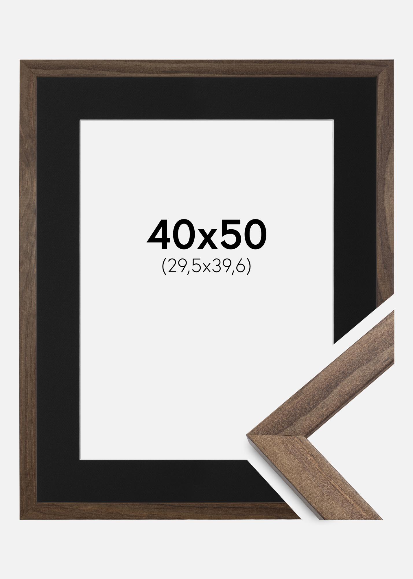 Forfait comprenant un cadre photo et un passe-partout noir inclus. Sur l'image du produit vous pouvez voir les dimensions du cadre (indiquées en gras) et les dimensions intérieures du passe-partout (indiquées entre parenthèses). Veuillez noter que les dimensions intérieures du passe-partout doivent toujours être inférieures de 1 cm à la taille de l'image souhaitée.